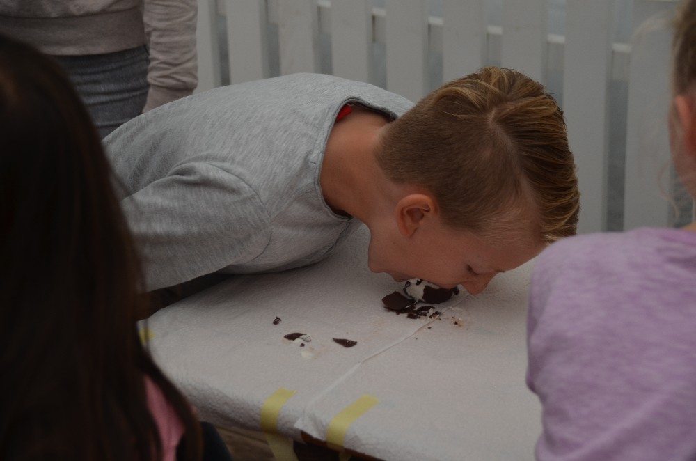 Als die Fünfer gegen 13.15h ankamen, konnte erst einmal zünftig zu Mittag gegessen werden; dann bat die SV zum Wettstreit der Klassen in 4 Disziplinen (LGP-Quiz, Schaumkusswettessen, Sackhüpfen und Eierlaufen). Inzwischen waren auch noch mehr Fachlehrkräfte eingetroffen, mit denen sich dann die Eltern in den Klassenverbänden ganz zwanglos unterhalten konnten.