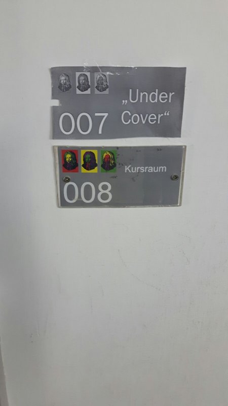 Dem Prinzip von Barbara. folgend hat die Poetry-Slam-AG des Leibniz-Gymasiums in den vergangenen Wochen diverse Hinweisschilder im Schulhaus gesichtet und im Anschluss neu arrangiert, kommentiert, verfälscht oder ergänzt. Die Kunstwerke stellen neue Verknüpfungen und Beziehungen her, werfen Fragen auf, sorgen für Gelächter, Irritation oder Nachdenklichkeit. Lange werden sie sicher nicht Bestand haben....doch das Kleben geht weiter... :)