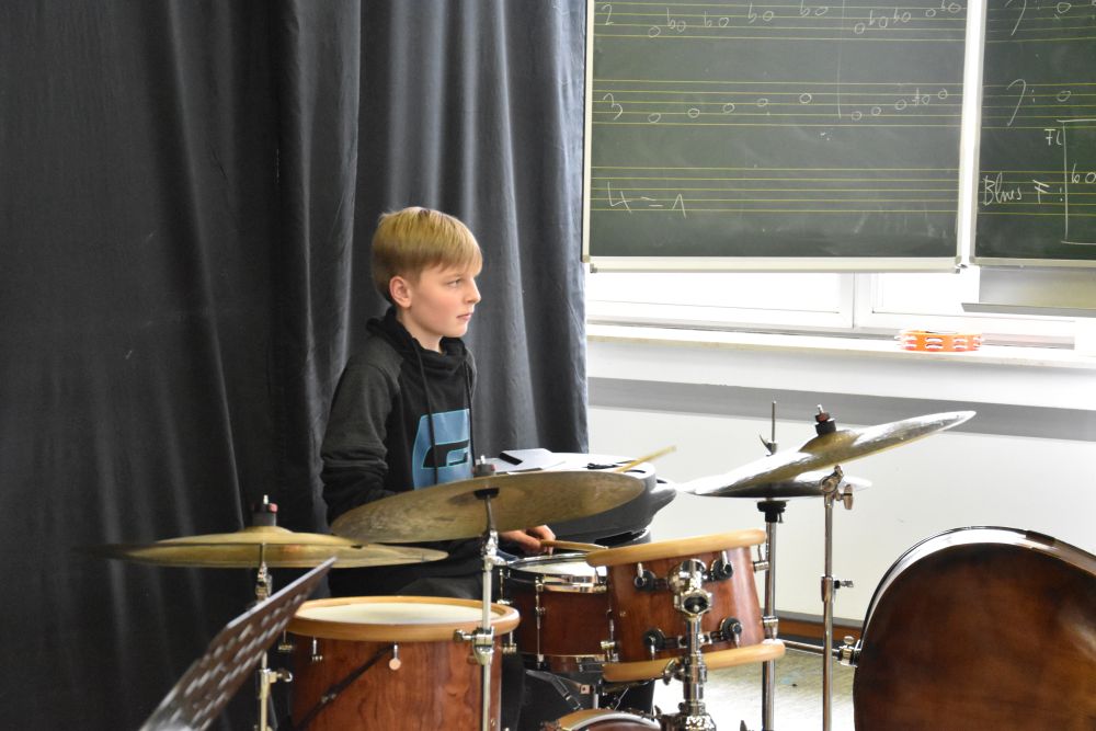 Vom 15.3.19 bis 16.3.19 fand der Jazzworkshop mit dem Christof-Heringer Trio statt. Zum dritten Mal haben wir uns zwei Tage mit dem Thema Jazz und der damit verbundenen Improvisation beschäftigt. Mit viel Geduld und auf uns übergreifender Begeisterung, leiteten die drei Profi-Jazzmusiker zwei Tage voller Proben in unseren Combos. Trotz kurzweiligen Überforderungserscheinungen waren die Ergebnisse mehr als zufriedenstellend und weckten in vielen jungen Musikern die Freude am Jazz.