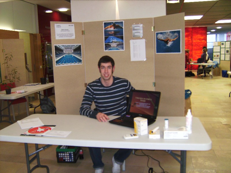 Martin Becker untersuchte den Energiestoffwechsel von Muskelzellen über Laktattests und Pulsmessungen bei Langstrecken- und Kurzstreckenschwimmern. Er belegte mit seiner Arbeit den 2. Platz.