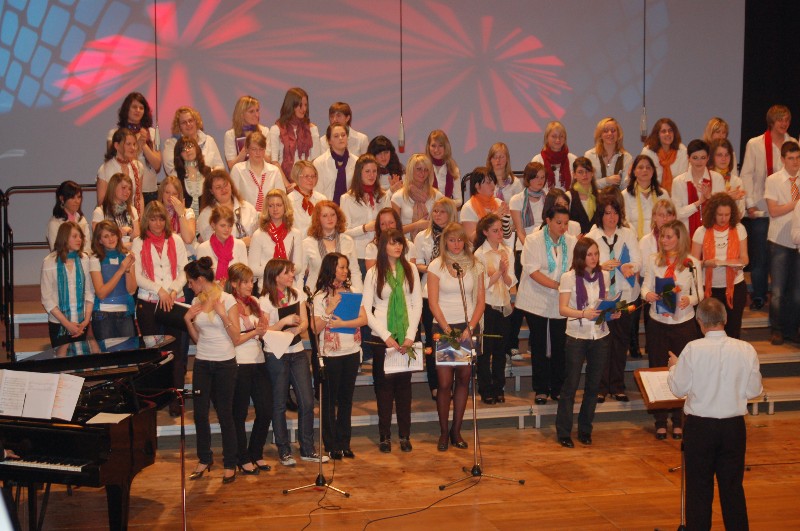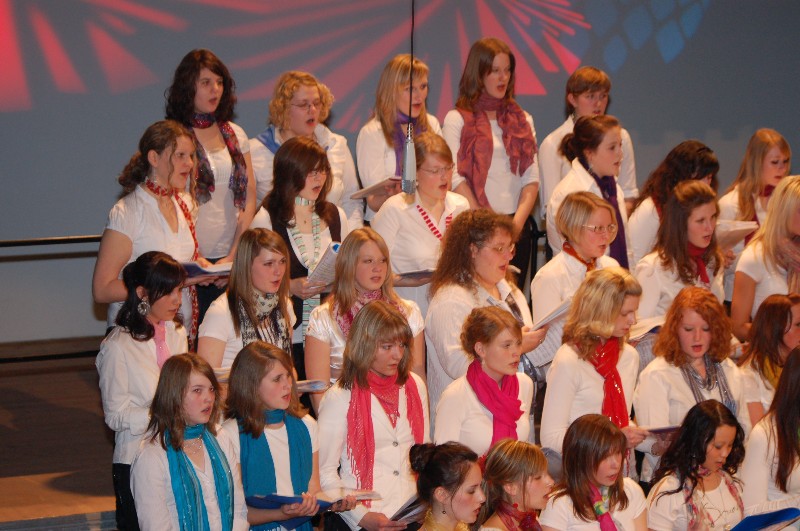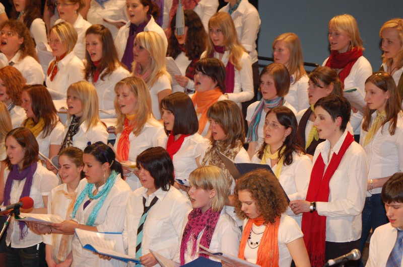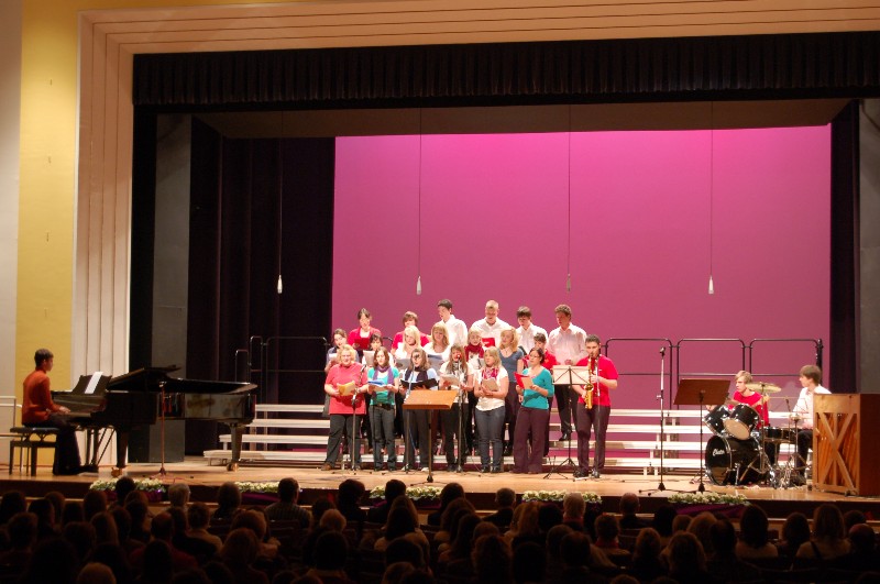 Nach der Pause begeisterten der Chor der Klassen 7 - 13 und die Chor-AG mit Balladen-Highlights der Popmusikgeschichte das Publikum, das immer wieder zum Mitmachen eingespannt wurde.