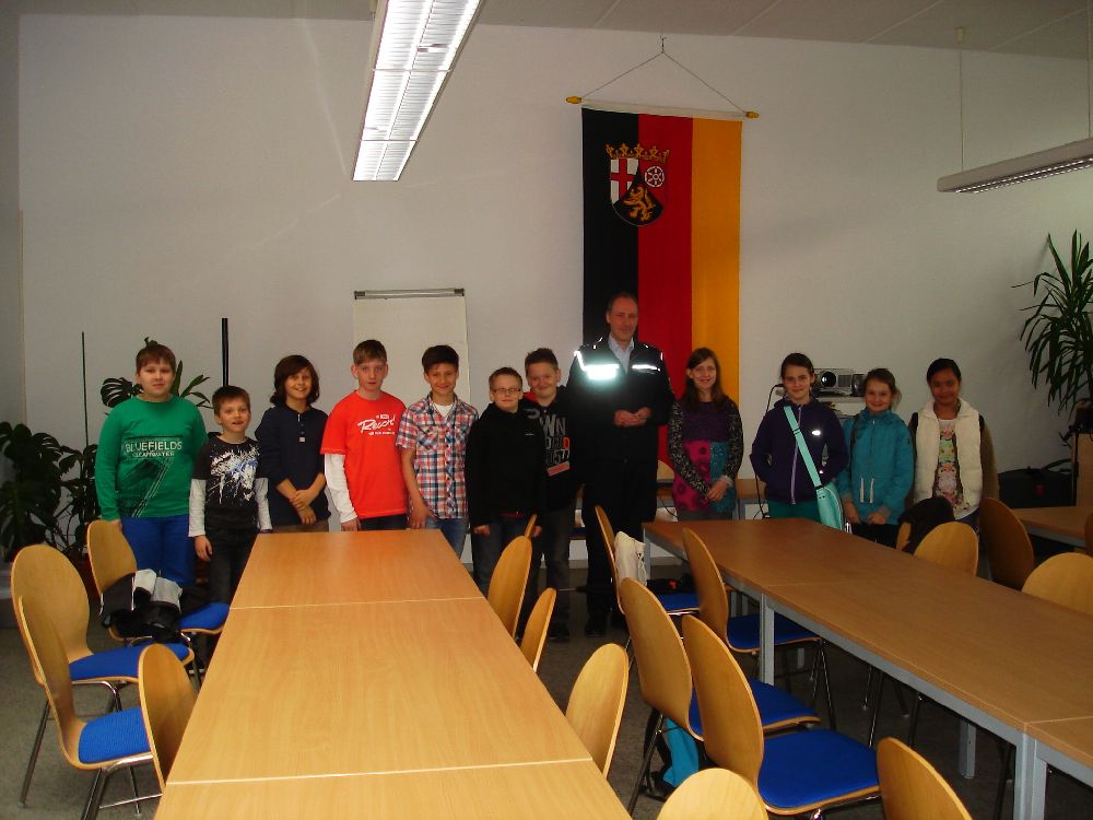 Am Mittwoch, dem 22. Mai 2013 liefen wir zu der Pirmasenser Polizei. Uns begleiteten Frau Rapp und Frau Schmitt. Außerdem waren noch zwei Oberstufenschülerinnen dabei. Am Eingang fing uns dann Herr Fallböhmer ab. Zuerst gingen wir in den großen Sitzungssaal. Da saß auch Herr Ringelspacher. Herr Fallböhmer erklärte uns, dass man sich in Kaiserslautern im Polizeipräsidium bewerben muss, wenn man bei der Polizei arbeiten will. Außerdem erklärte er uns, dass es fünf Polizeipräsidien in Rheinland- Pfalz gibt: