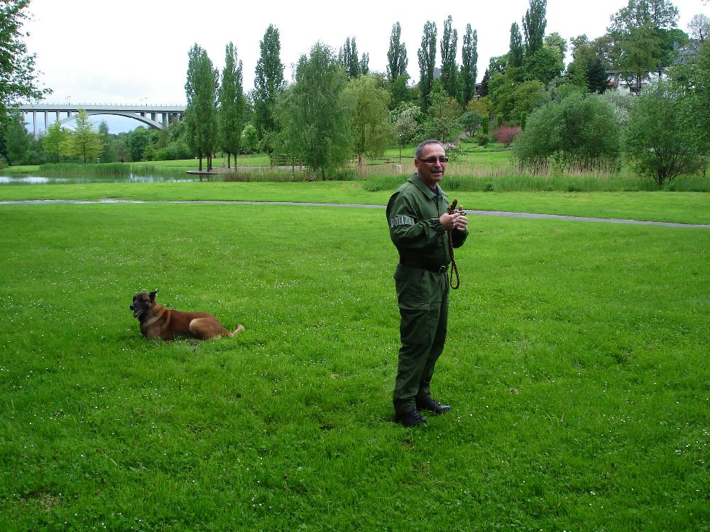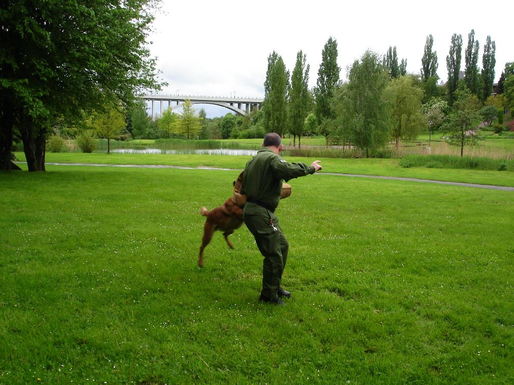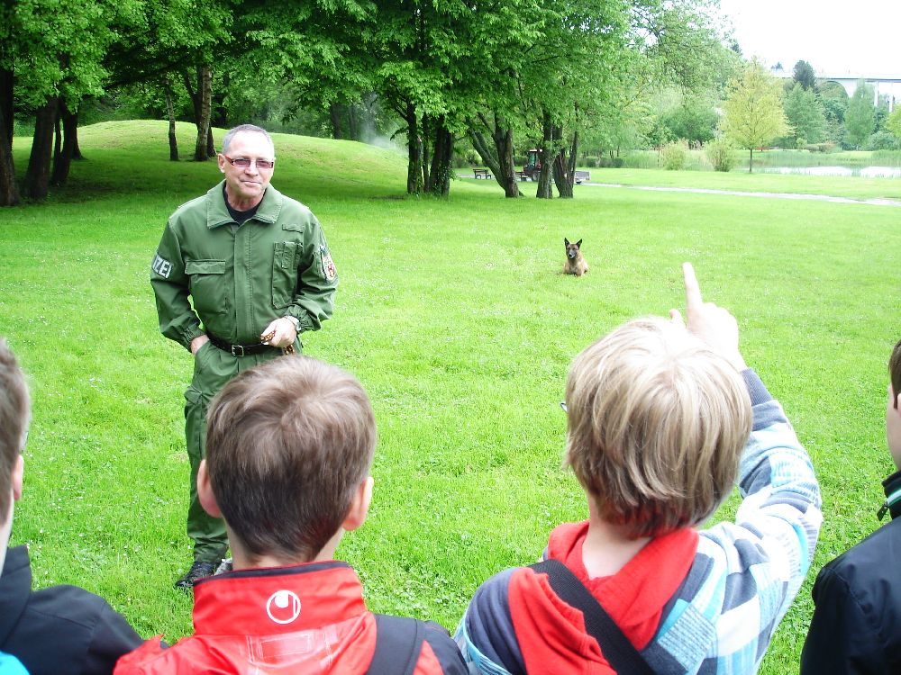 Danach gingen wir in den Strecktalpark. Dort bekamen wir noch kurz erklärt, was ein Polizeihund können muss. Er führte uns ein paar Tricks vor. Ein Schüler durfte dem Hund einen Befehl geben.