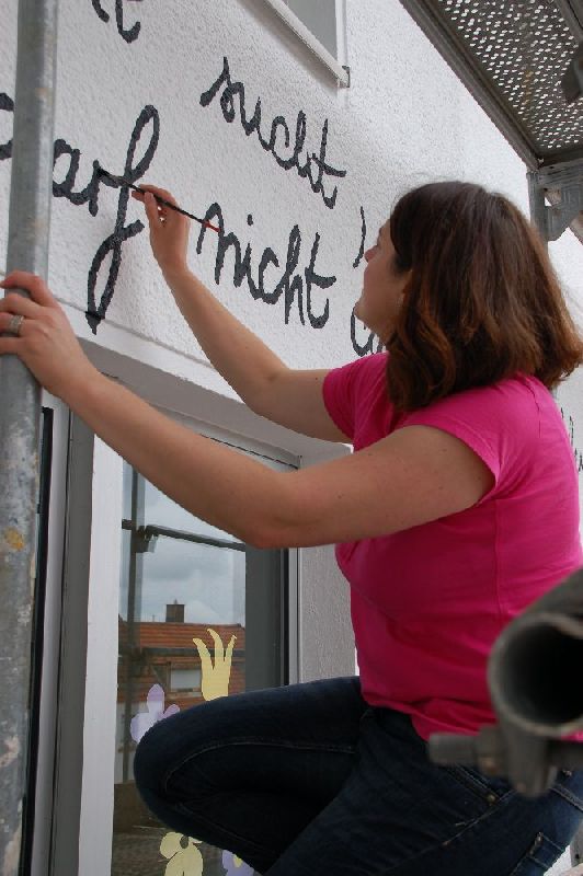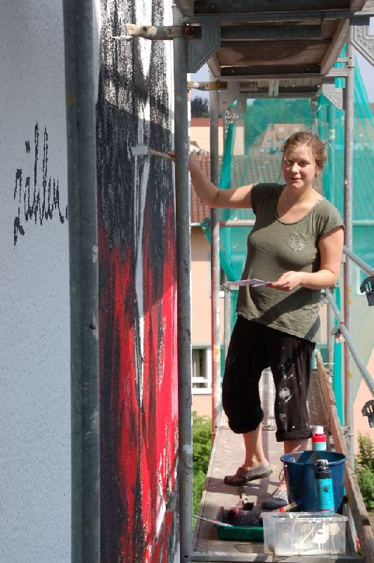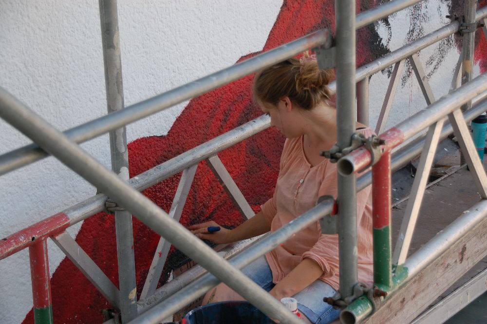 Vielen Dank an die Künstlerin, die trotz des erwarteten Babys noch bei den sommerlichen Temperaturen viele Tage auf dem Gerüst tätig war!
