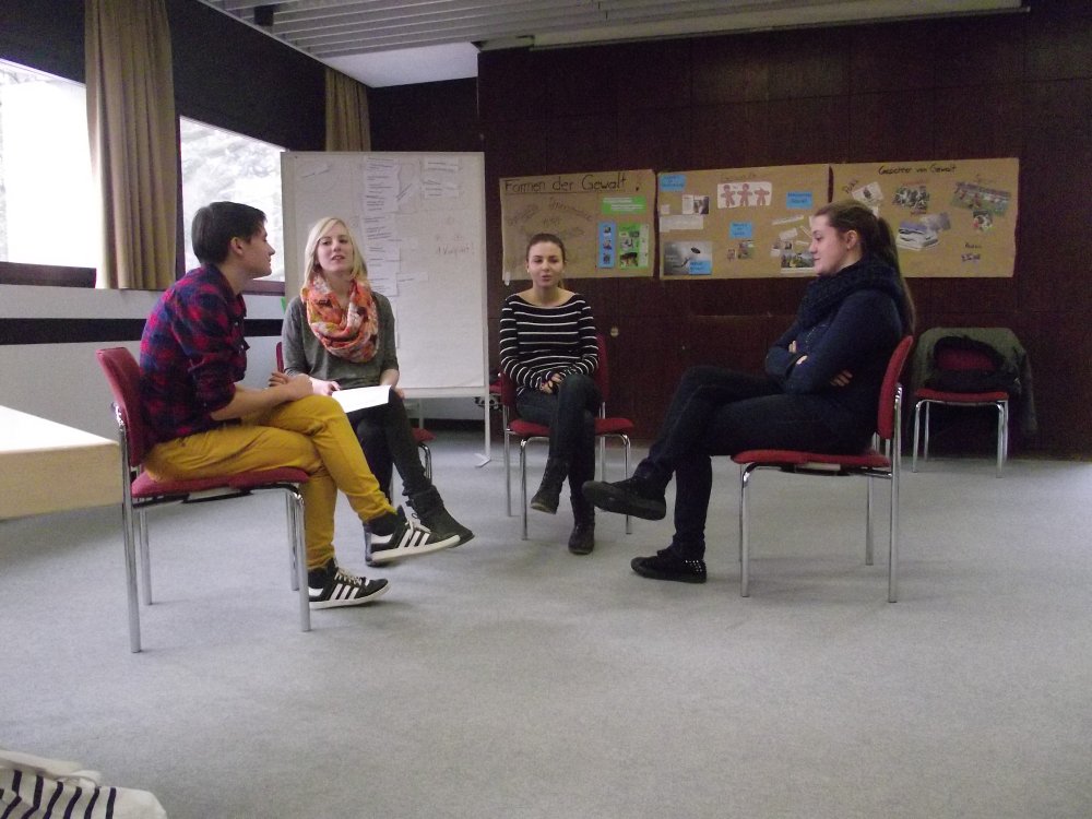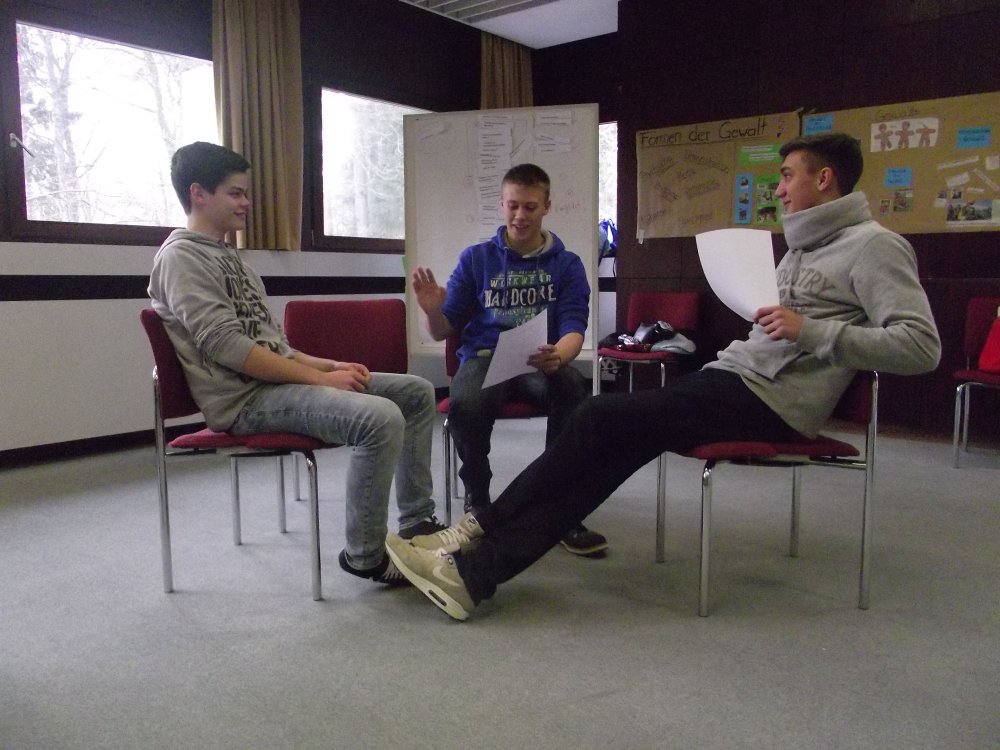 Durch Meinungsverschiedenheiten und aus Intoleranz, Inkompetenz und Respektlosigkeit dem anderen gegenüber entsteht Streit. Deshalb möchten wir euch helfen und euch die Möglichkeit bieten, mit ein paar bestimmten Regeln, wie z.B. das Unterlassen von Beleidigungen und ausreden lassen der anderen, eine Lösung zu finden.