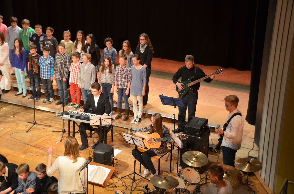 Das Leibniz hatte wieder zum traditionellen Musikabend in die Festhalle eingeladen. Das Programm wurde von verschiedenen vokalen und instrumentalen Arbeitsgemeinschaften der Schule getragen, die sich zum Teil auch neu formiert zum ersten Mal präsentierten. Im Gegensatz zu dem eher klassisch orientierten Kammermusikabend bot das Programm des Schulkonzerts unter anderem Bearbeitungen verschiedener Pop-Klassiker, aktueller Hits und auch Musicalmelodien.