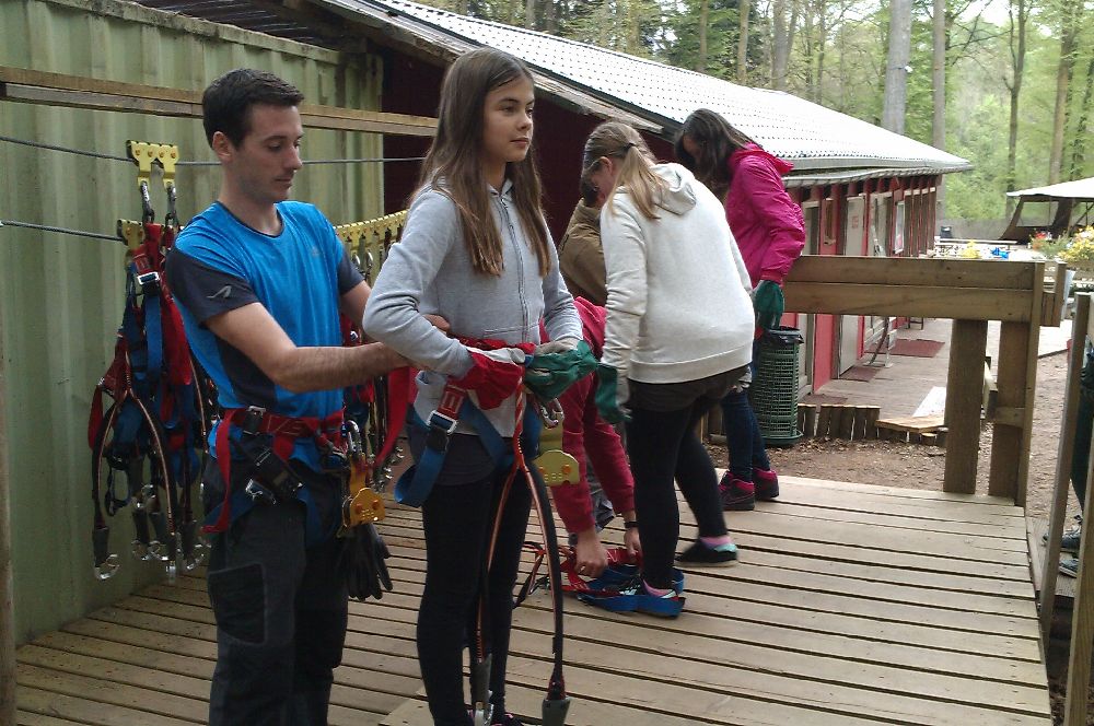 Am 30.04.2014 war die Französischklasse 6b/6e in Begleitung von Frau Bech und Frau Wimber im Tépacap Kletterpark in Bitche. Der Park liegt im Freien zwischen Bäumen und ist in 8 Kletterparcours von je unterschiedlichem Schwierigkeitsgrad eingeteilt. Jeder Parcours beginnt auf dem Boden und führt in die entsprechende Höhe. Man bekommt alles genau erklärt und – obwohl es auf Französisch war – haben wir alles gut verstanden und uns gleich zurecht gefunden. Im Notfall können die Mitarbeiter im Tépacap Park auch Deutsch sprechen. Der Park bietet nicht nur Gelegenheiten zum Klettern an, sondern auch noch andere Attraktionen, wie z.B. ein Trampolin, eine Bowlingbahn, ein Bungee-Trampolin und vieles mehr (natürlich auch im Freien). Der Park hat auch noch einen Imbiß (namens Tépacro'c). 3 Minuten entfernt vom Park ist auch noch ein sehr schöner See.