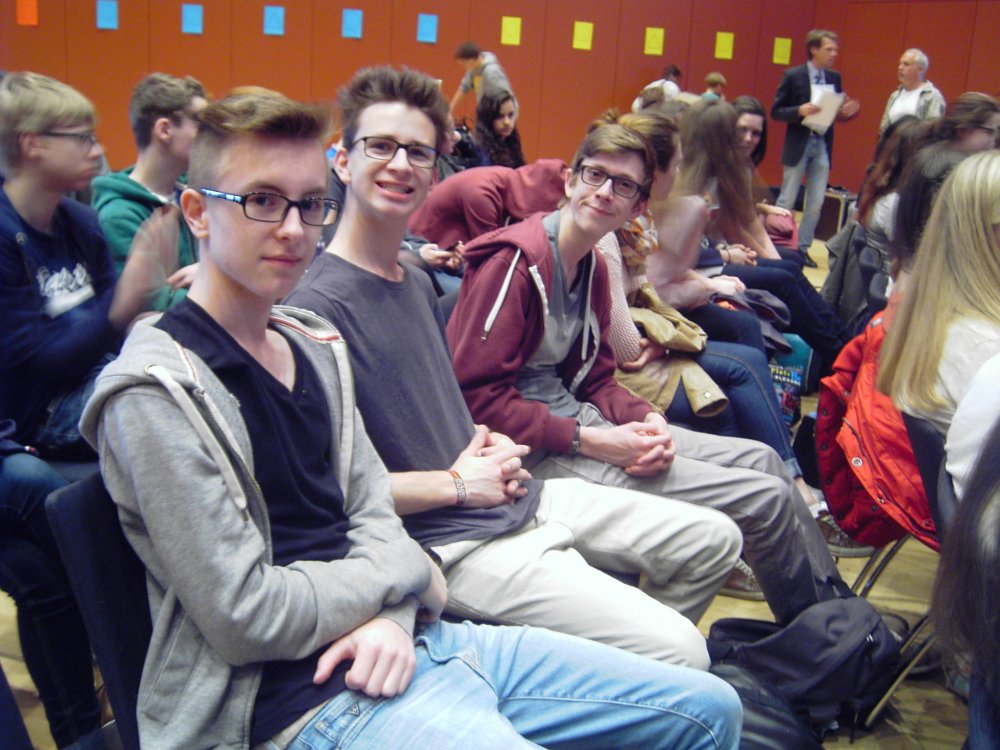 Nach einem gesunden Mittagessen wurden die Schüler von den Wettbewerbsleitern Herrn Rapp und Frau Geßner begrüßt. Die Ehrung wurde durch zahlreiche Stücke einer Schulband musikalisch unterstützt. Zuerst wurden die Grundkurse geehrt. Zu unserer großen Freude konnte sich Herr Jessls Grundkurs den ersten Platz sichern! Anschließend waren die Leistungskurse dran: Herr Rapp wusste die Spannung zu halten. Frau Laux' Mathe Leistungskurs ergatterte schließlich den ersten Platz und erhielt einen Geldpreis in Höhe von 300€. An dieser Stelle möchten wir uns bei unseren engagierten Lehrern Herr Jessl und Frau Laux bedanken.