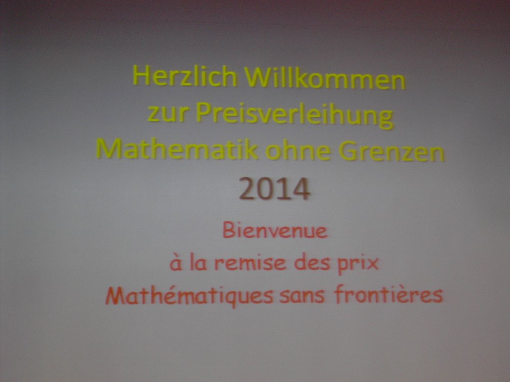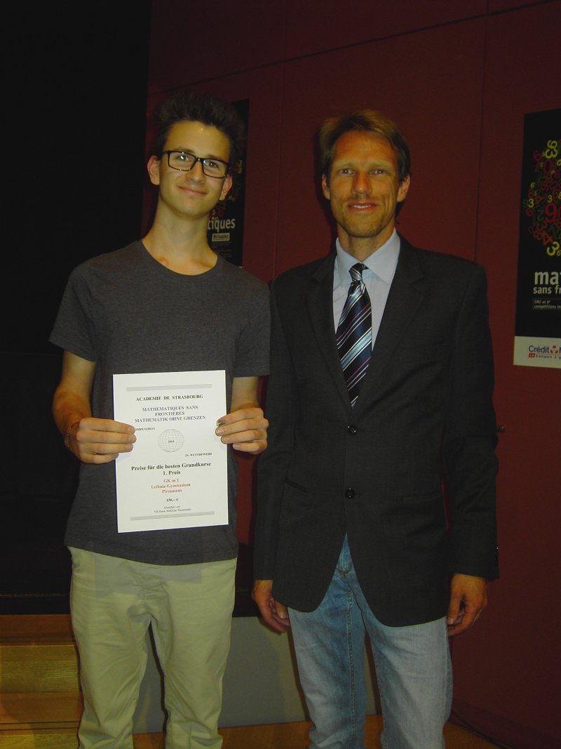 Am 11. März nahmen die Klassenstufen 10 und 11 aller Gymnasien der Süd-Südwestpfalz und des französischen Elsass sowie die Internationale Schule in Brüssel am Mathematikwettbewerb "Mathematik ohne Grenzen" teil. Der Mathematik Leistungskurs von Frau Laux sowie der Mathematik Grundkurs von Herr Jessl wurden anschließend zur Preisverleihung am 6. Mai nach Wörth eingeladen.