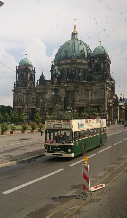Nachdem wir um 7:00 Uhr in dem Gemeinschaftsraum gefrühstückt hatten ( Aufbackbrötchen und Billigwurst), fuhren wir mit der U9 in Richtung Rathaus Steglitz und stiegen am Zoologischen Garten bei strömendem Regen aus. Da sich Herr Müller nicht für einen Bus entscheiden konnte, liefen wir eine halbe Stunde sinnlos von Bus zu Bus. Nachdem wir den richtigen gefunden hatten, begannen wir mit unserer Stadtrundfahrt und fuhren sämtliche Berliner Sehenswürdigkeiten ab. An einem erhaltenen Stück Mauer machten wir Halt. Nach einer kurzen Pause fuhren wir bis zum Sony Center und durften dort in den Arkaden Mittagessen. Danach kam Herr Müller auf die Idee, bei gefühlten 40 schwülen Grad im Schatten die ganzen gesehenen Sehenswürdigkeiten abzulaufen. Als auch die Lehrer keine Lust mehr hatten, durften wir in unser Hostel fahren, um uns für den Wahlabend fertig zu machen. Zur Wahl stand eine „Hammer" - Oper, eine Besichtigung der Berliner Unterwelten, das Curry-Wurst Museum, sowie ein Kabarett. Auf dem Weg zu den jeweiligen Aktionen ist uns aufgefallen, dass ein Mitschüler verloren ging. Er muss wohl in der U-Bahn eingeschlafen sein. Natürlich ist er nach den Aktivitäten wieder im Hostel aufgetaucht. Nach den Aktivitäten trafen wir uns alle wieder in der Lobby unseres Hostels und schauten gemeinsam das Länderspiel Brasilien gegen Deutschland. (Ergebnis: 1:7; yaay)