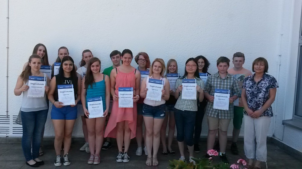 | 10a | Eric Bahne, Lukas Schön, Joel Sutter Ehrenurkunde Nadja Freier, Nadine Gegen-furtner,Lara Henkel, Julia Knecht, Maren Schatzmann, Helin Turan, Jana Vogel, Daniela Wüstemann, Sun Jie Yan Siegerurkunde, Jana Wagner und Michelle Zwipf Ehrenurkunde |