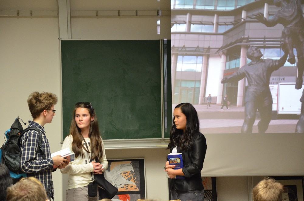Alle Schüler bereiteten ihre Ergebnisse für eine publikumswirksame Präsentation auf. Zahlreiche Eltern erlebten, wie ihre Kinder das Lampenfieber durch unterhaltsame Darbietungen bewältigten und mit dem Publikum durch eingeschobene Rückfragen aktiv interagierten.