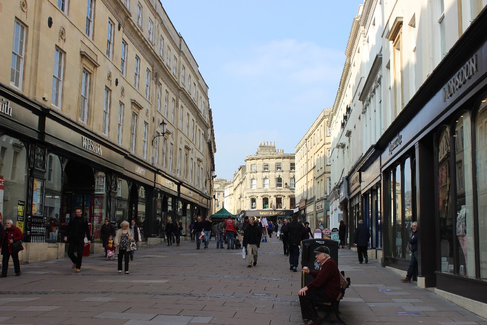 There was man with bird seed and there were a lot of doves sitting on his arms and head. We gave him some money and also fed the doves on our heads. We took some photos. Then we went into a lot of shops - Bath is very nice. (S.S.)