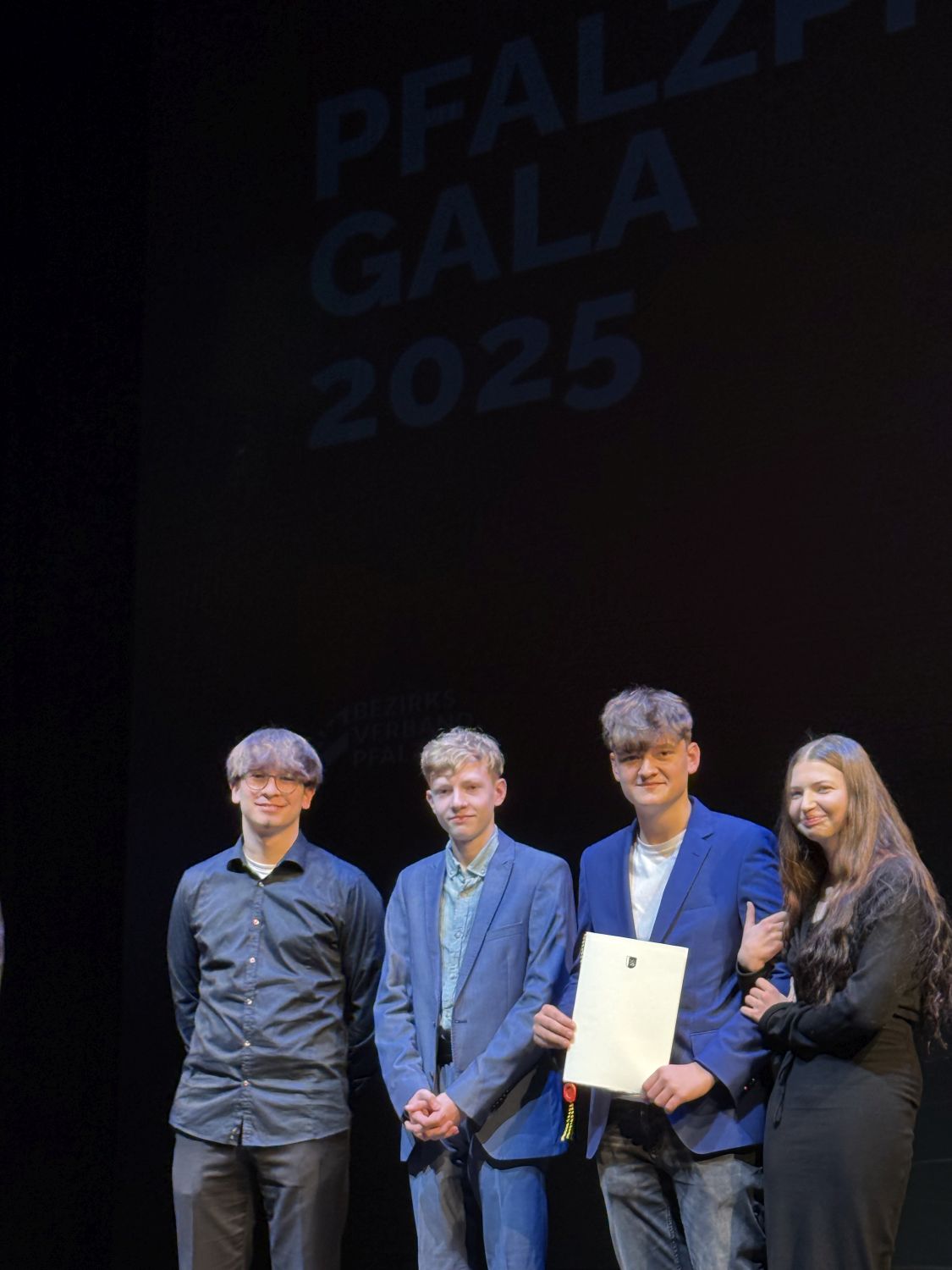 Der Bezirksverband Pfalz würdigte unseren Podcast über die Schulveranstaltung vom 8. November 2024 mit der Schüleranerkennung des Medienpreises Pfalz. Neben den 500 Euro Preisgeld für unsere AG-Kasse freute uns vor allem, gesehen und gehört zu werden. Denn was unsere Schülerinnen und Schüler jedes Mal tun, hat viel mit Courage zu tun. Wir wissen, dass unsere Schulgemeinschaft reich an Menschen mit einem klaren, demokratisch geprägten moralischen Kompass ist – doch sich damit in eine digitale und permanente Öffentlichkeit zu begeben, bedeutet für junge Menschen ohne gefestigtes berufliches Fundament auch ein Risiko. Gerade in einer Zeit, in der in den sozialen Medien die lauten und extremen Stimmen immer mehr Raum gewinnen, ist es umso wichtiger, dass auch die reflektierten, demokratischen Stimmen dieser Generation Gehör finden. Umso dankbarer sind wir, dass dies gestern in Kaiserslautern geschehen ist.