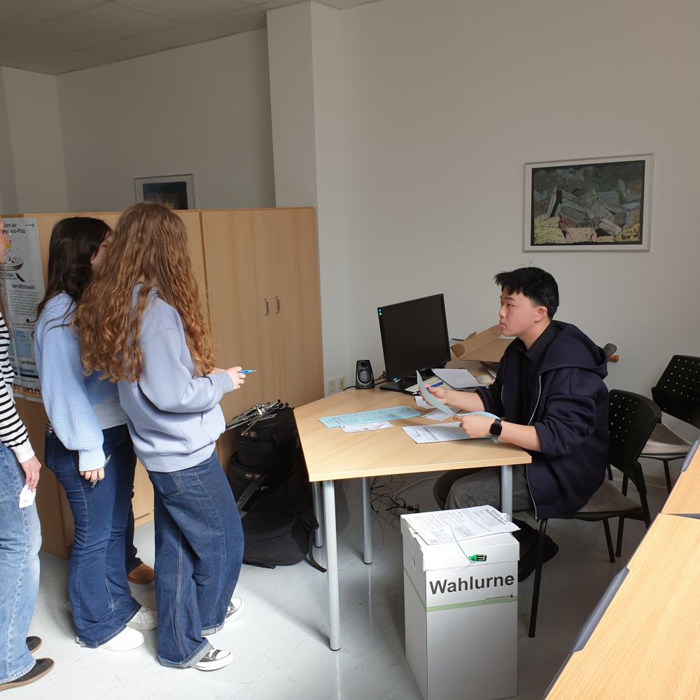 Passend zur Landtagswahl Rheinland-Pfalz am 22. März 2026 durften sich auch die Schülerinnen und Schüler des Leibniz-Gymnasiums an der Wahlurne erproben. Vom 17. bis 20. März 2026 stimmten beim Projekt „Juniorwahl“, vorbereitet und organisiert durch den Sozialkundeunterricht ab Klasse 8, 211 Wahlberechtigte ab, was einer Wahlbeteiligung von über 90% entsprach!