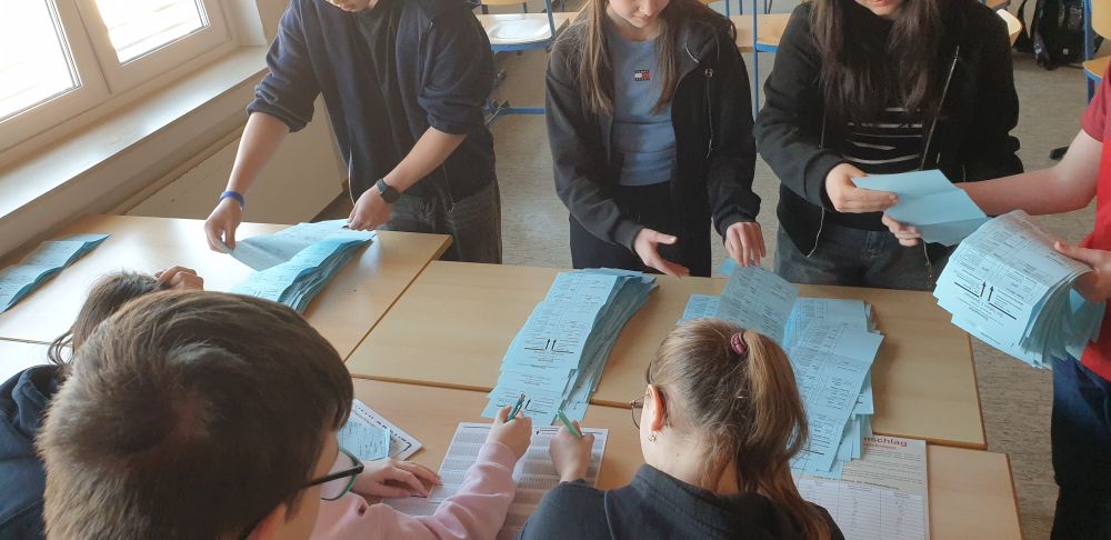 Das Wahllokal und die abschließende Stimmauszählung wurden vorbildlich durch einen offiziellen Wahlvorstand aus der Klasse 9A betreut. Nochmals vielen Dank für dieses Engagement!