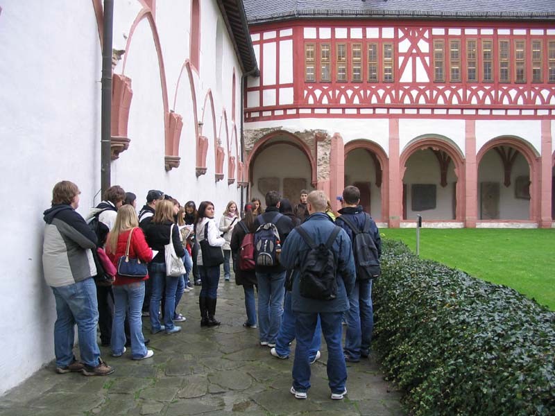 Der Deutsch-Leistungskurs von Frau Brinkop-Walter und der LK Geschichte von Herrn Schulz fuhren am 13.11.06 in das Kloster, dessen Innenräume dem Film "Der Name der Rose" als Kulisse dienten. Im malerischen Rheingau verbrachten die Schüler einen Tag in den Mauern des ehemaligen Zisterzienser-Klosters und lernten unter fachkundiger Anleitung einer Gruppenleiterin sowohl die Entstehungsbedingungen der Romanverfilmung als auch den historischen Hintergrund der Ordensgeschichte und des Klosterlebens kennen.
