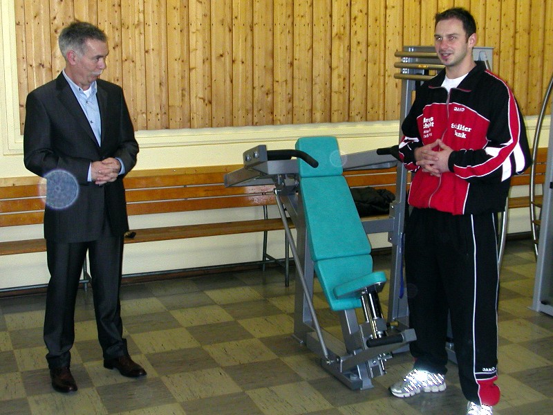 Ebenfalls anwesend war Herr Michael Resch von der Firma Ergo-Fit. Ihm soll an dieser Stelle noch einmal besonders gedankt werden, denn nur mit seiner großzügigen Spende von fabrikneuen Fitnessgeräten im Wert von ca. € 30000 war die Umsetzung unseres Fitnessraumes möglich.