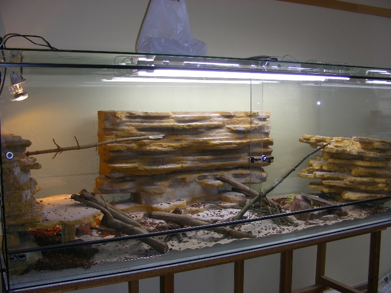 06.02.08: Reptilien-AG besetzt selbst gebautes Terrarium mit Bartagamen