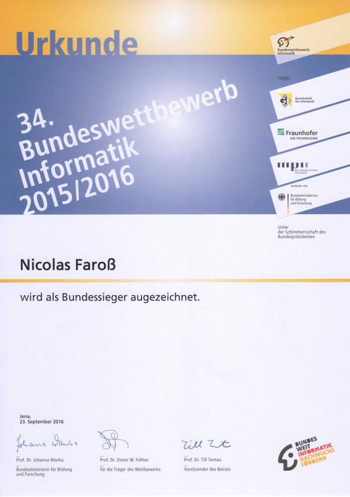23.09.16: Nicolas Faroß Bundessieger in Informatik