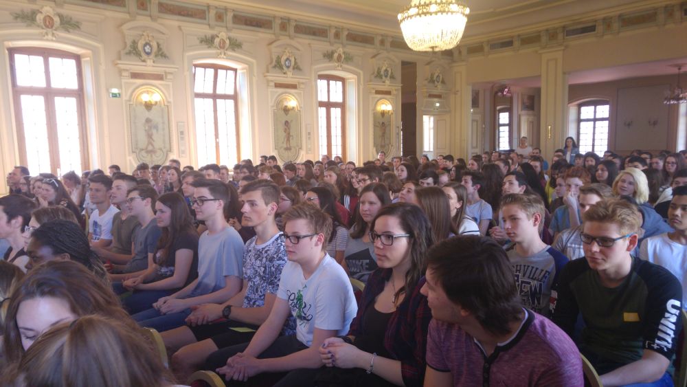 Am 17.04. wurde die 10c zusammen mit Frau Hoock und Frau Gouil nach Haguenau zur Preisverleihung "Mathematik ohne Grenzen" eingeladen. Einige Wochen zuvor beschäftigte sich die Klasse mit den Aufgabestellungen des internationalen Mathematikwettbewerbs und wurde durch die erbrachte Leistung gebeten nach Frankreich zu kommen.
