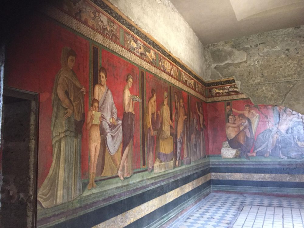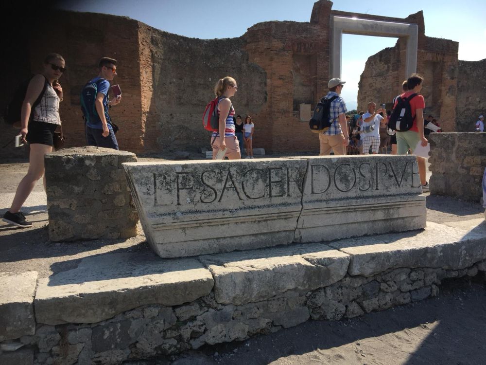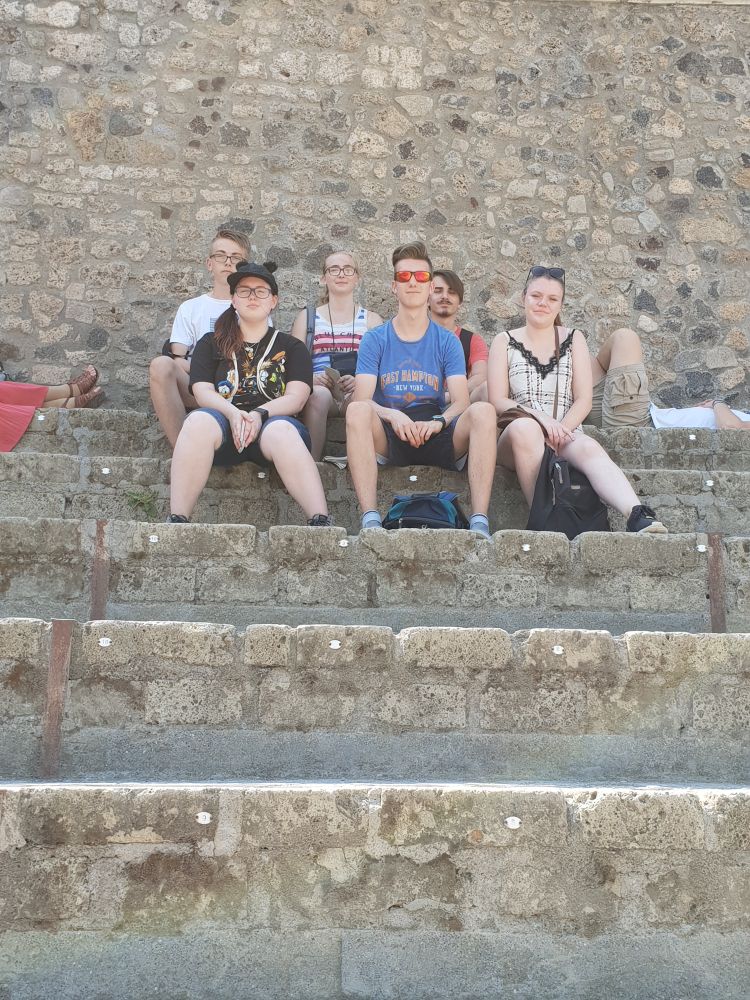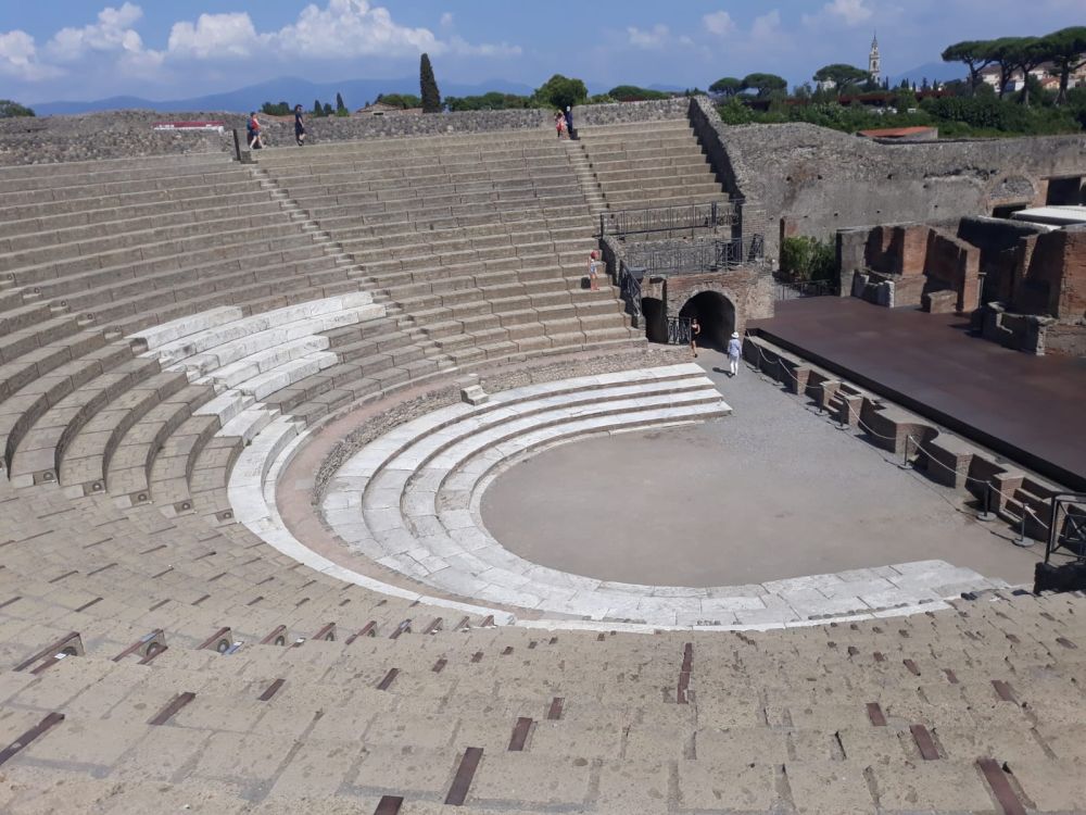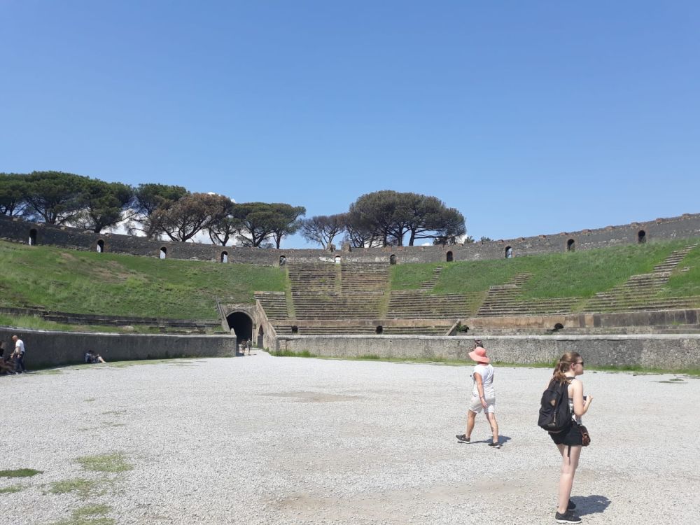 Am nächsten Tag fuhren wir mit der Regionalbahn nach Pompeji, die ehemals pulsierende Großstadt, die damals durch den Vesuvausbruch begraben wurde. Wir entdeckten die verschiedensten Gebäude von Thermen und dem Amphitheater bis hin zu normalen Wohnhäusern. Auch hatten wir eine tolle Aussicht auf den Vesuv, den Vulkan, der Pompeji durch seine Asche damals begraben hatte. Nach einem sehr ereignisreichen Tag ging es für uns wieder zum Hotel.