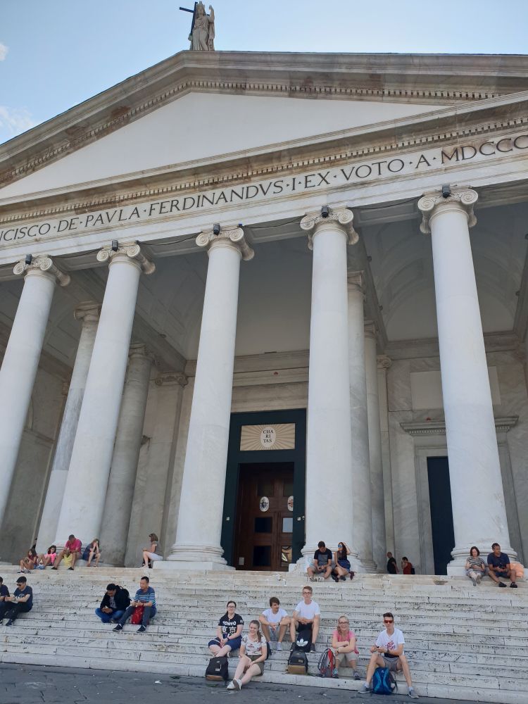 Am letzten Tag hatten wir leider kein wundervolles Wetter wie zuvor, jedoch hielt es uns nicht ab unser Programm fortzusetzen. Bevor wir unsere Abreise starteten, besuchten wir noch das archäologische Nationalmuseum Neapels, in welchem wir sehr viele erstaunliche antike Statuen und Gemälde sahen, aber auch noch sehr viel mehr. Nach der Tour durch das Museum, ging es noch kurz in die Stadt, um eine "frittierte Pizza" als kleine Stärkung für jeden zu besorgen.