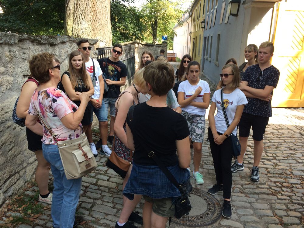 Noch nicht geschichtlich gesättigt, verschlug es uns anschließend zu dem Haus, in dem Schiller gewohnt hatte und gestorben war. Das durch eine hervorragende Führung aufgezeigte Haus stellte sich trotz der, nun ja, „interessanten" Tapeten doch als ein besonderer Einblick in das Leben vor rund 200 Jahren heraus. Den anstrengenden Tag ließ die Gruppe genüsslich auf dem lokalen Weinfest ausklingen.