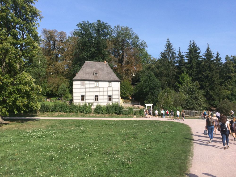 Am ersten Tag wurde die Gruppe durch eine nicht unanstrengende Stadtführung sowie einen Kurzbesuch in Goethes Gartenhaus gefordert bzw. gefördert. Beides fand bei überraschend gutem Wetter statt. Alleine der zauberhafte Garten, welcher zu dem Gartenhaus gehörte, war bereits ein Höhepunkt des dreitägigen Trips. Nach einer von Programm befreiten Zeit trafen sich wieder alle Akteure vor dem Theater im Gewölbe. Dort erlebten wir eine ansprechende, „lescherliche" Komödie, welche die unterschiedlichen Arten von Regisseuren an der Kästchenszene aus Goethes Faust aufzeigte.
