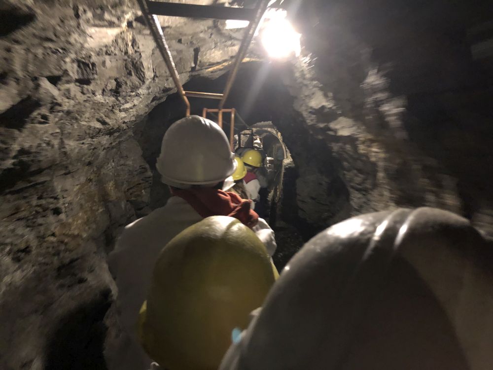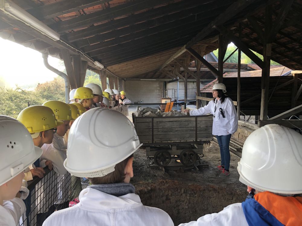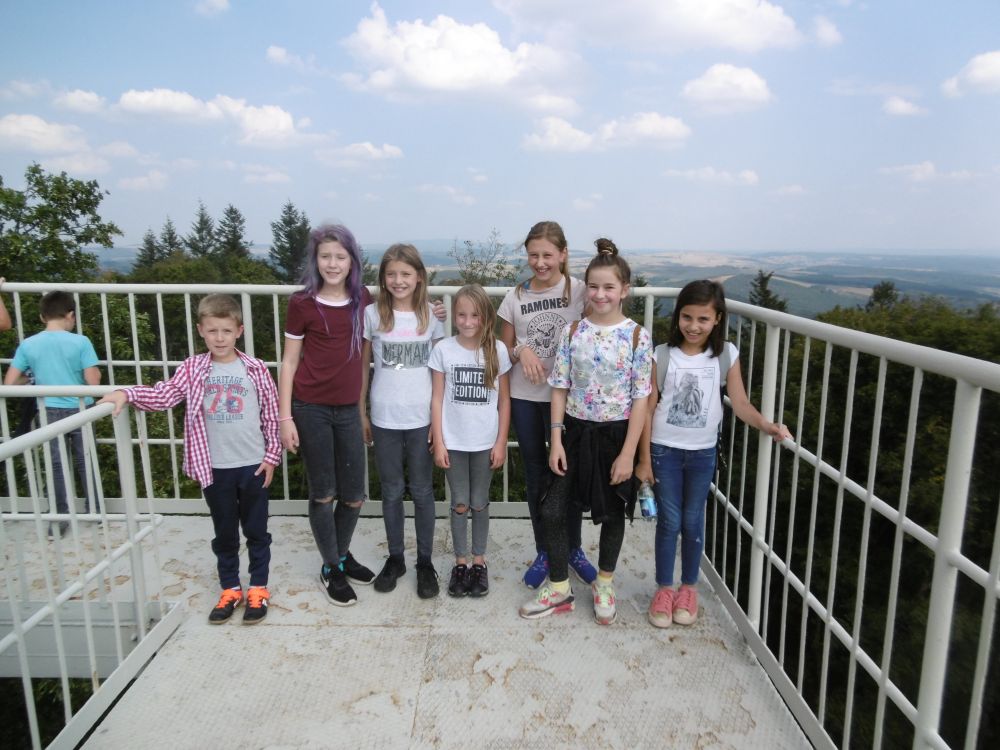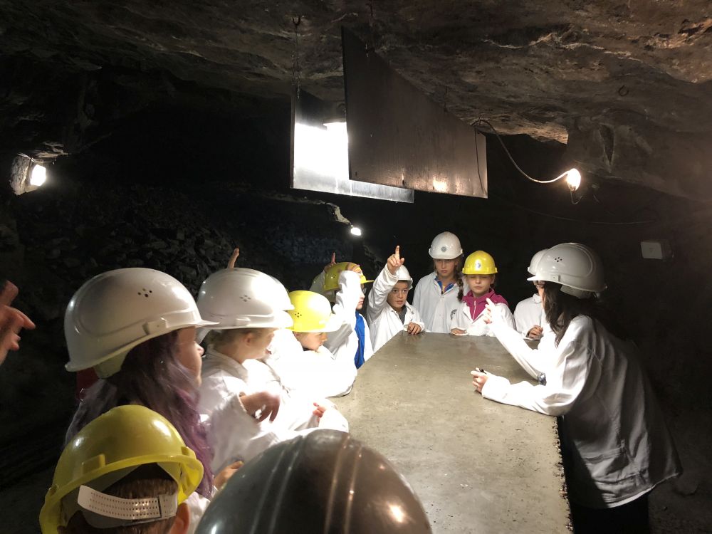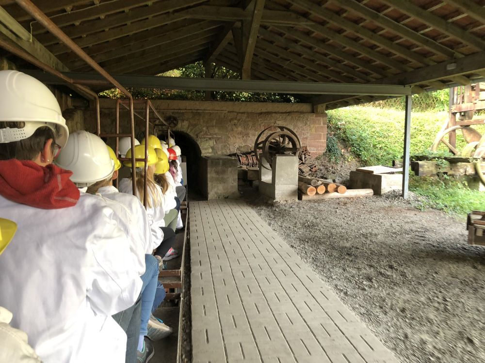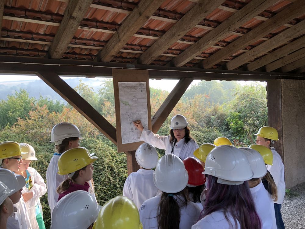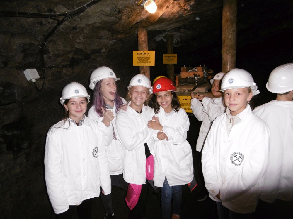 Das Wetter zeigte sich am ersten Tag von seiner sommerlichsten Seite, so dass wir bei der Wanderung zum Aussichtsturm auf dem Selberg keinen Regen befürchten mussten. Auch das Kalkbergwerk am nächsten Morgen wurde trockenen Fußes erreicht. Nach der obligatorischen Fahrt mit der Grubenbahn erfuhren wir viel über die Arbeitsweise im Stollen. Die Schülerinnen und Schüler verfolgten aufmerksam die Erklärungen zum Abbau und der Verarbeitung des Kalksteins und stellten dann auch fest: "So viel Arbeit für so wenig Geld!"