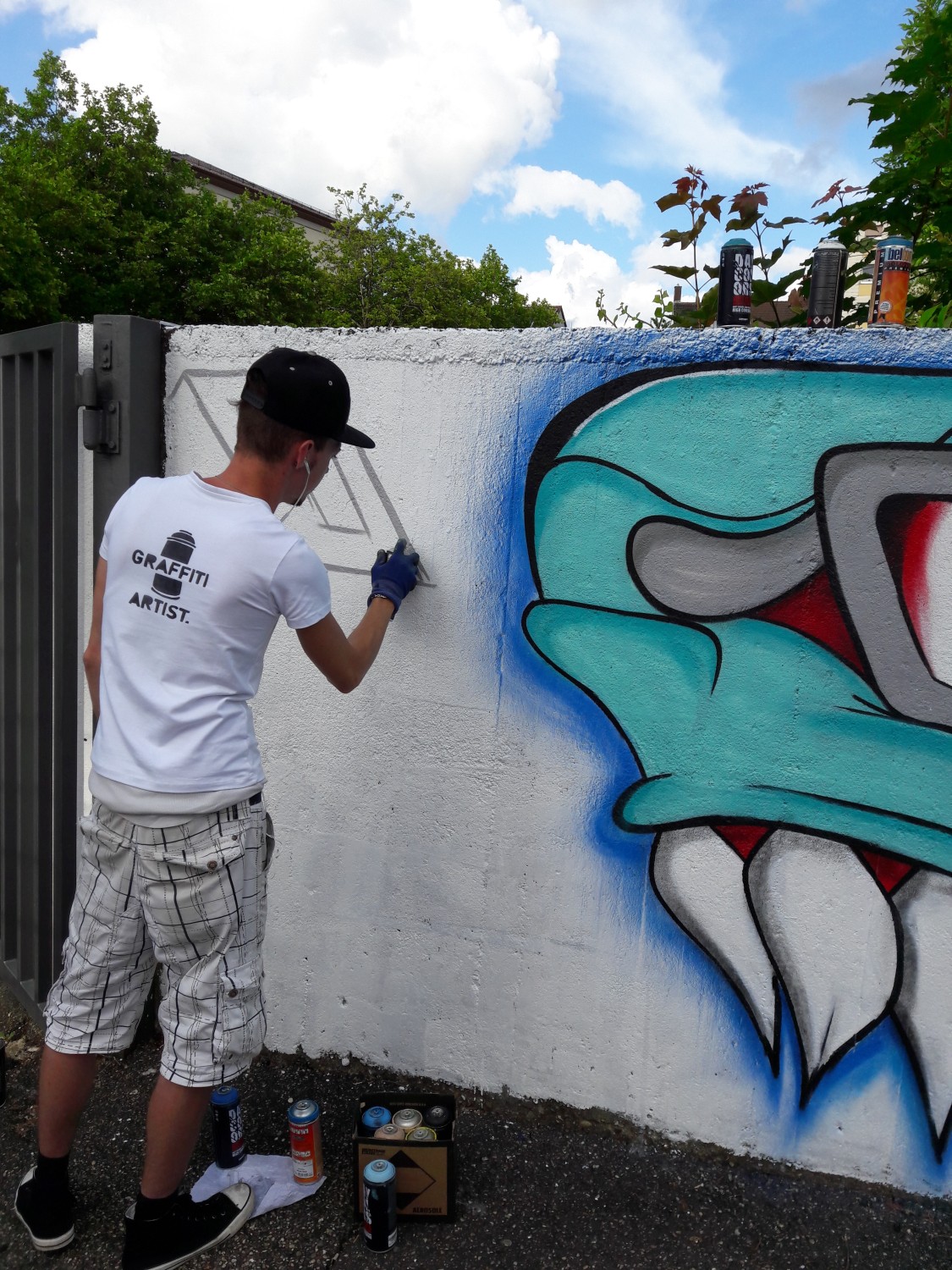 Der Graffiti-Künstler Mike Britt hat mehreren Außenwänden unseres Leibniz-Gymnasiums „neues Leben" eingehaucht. Der passionierte Graffiti-Künstler wuchs in der Nähe von Pirmasens auf. Als gelernter Maler und Lackierer machte er aus seinem Hobby seinen Beruf. Er ist kein Unbekannter in der „Sprayer-Szene"; er arbeitet legal auf Auftrag und hat schon mehrere Pirmasenser Institutionen mit seiner Kunst beglückt (z. B. das Jugendclubhaus im Erlenteich, das Regenbogen Kinderland, Räume des Malerfachbetriebes Samuel Solms). Auch das Universum Kinocenter in Landau ist von ihm verschönert worden.