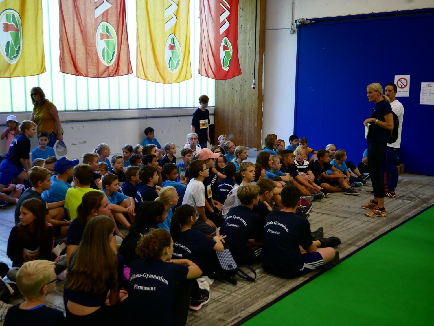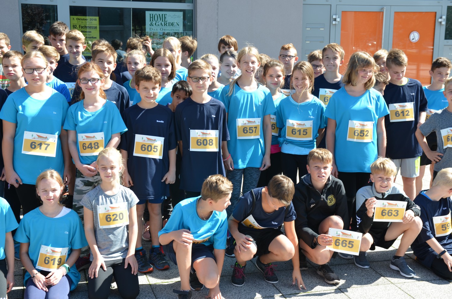 Am Samstag den 8. September 2018 versammelten sich viele Leibniz-Schülerinnen und -Schüler, um ihre Schule beim Schülerlauf auf dem Messegelände in Pirmasens zu vertreten. Es hat den Meisten nicht nur Spaß gemacht, sondern es waren auch tolle Ergebnisse dabei. Begleitet haben uns in diesem Jahr Frau Horstmann und Herr Mathes. Fahnenträgerin war Hannah Endler. Zusätzlich hatten wir angenehme Lauftemperaturen. Es waren dieses Jahr ungefähr 80 Leibniz-Schüler aus den Klassen 5-8 am Start, was sehr viel Engagement zeigt. Am Schluss hat jeder zur Belohnung der tollen Leistung eine Medaille und einen Schokoreisriegel bekommen.