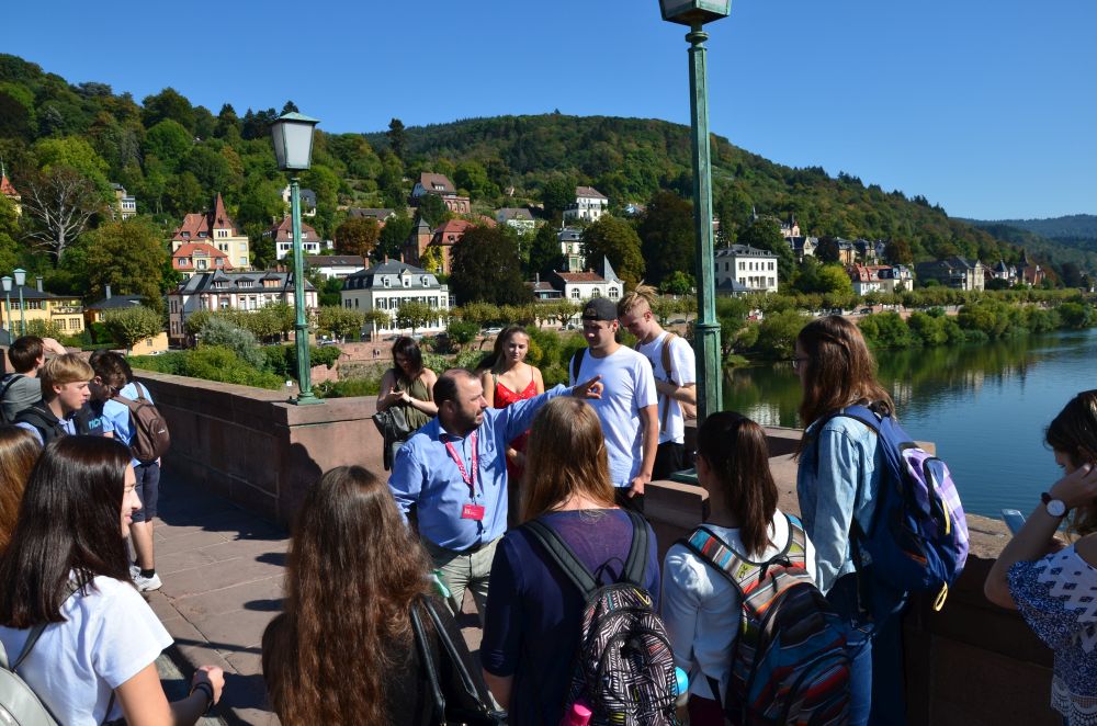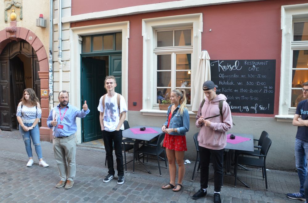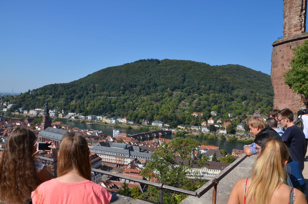 Für Hölderlin die Ländlichschönste, für den Geographen schlicht Heidelberg. Für Germanisten ein locus amoenus. Der Deutsch-LK MSS 13 besuchte am Dienstag, den 18. September die malerisch gelegene Neckarstadt. Die Exkursion stand unter dem Thema der Romantik und ging den oben genannten Fragen nach. Bei einer Stadtführung wurde auch erkundet, wodurch die Stadt ihre Stellung innerhalb der Romantik erhielt. Nicht nur Literatur, auch Malerei und Musik leisteten hierzu einen nicht unbedeutenden Beitrag. Bei strahlendem Sonnenschein durchstreiften 17 Schüler mit Herrn Faul die Altstadt, Wohn- und Ereignisorte der Literatur wurden in Augenschein genommen, Karzer und studentische Traditionsorte aufgesucht, abschließend fuhr man mit der Bergbahn zu den Schlossterrassen und rundete den Tag mit einem Blick über das Gesamtensemble ab.