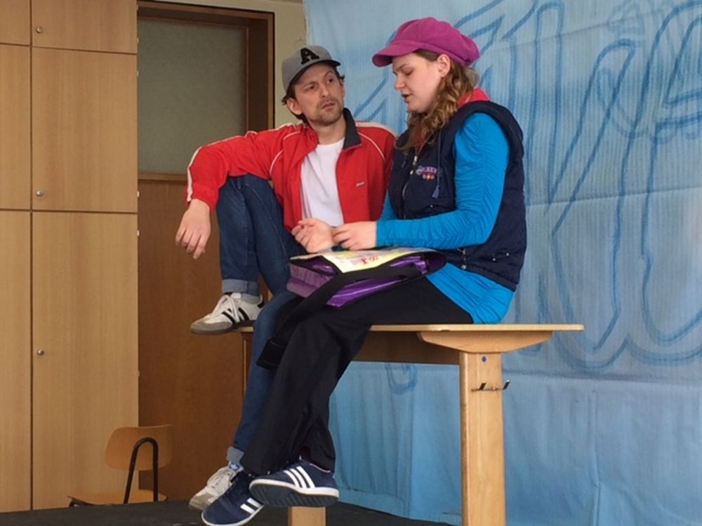 Der Musiksaal war bis auf den letzten Platz gefüllt, als am 1.Februar das Theaterensemble „Radiks" aus Berlin mit zwei mobilen Theaterproduktionen vor 330 Schülern der Klassenstufen 8 bis 11 gastierte.