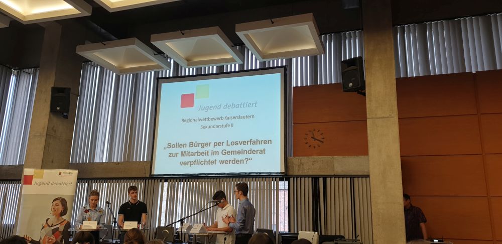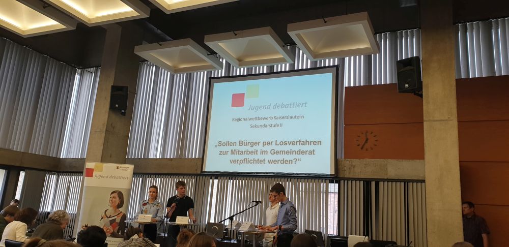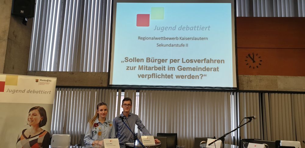 Der erste Schritt für die Teilnahme am bundesweiten Wettbewerb ist der Schulwettbewerb „Jugend debattiert", der am 23.01.2019 an unserer Schule ausgetragen wurde. Dabei konnten sich Cornelius Bergweiler (10b) und Moritz Stein (10a) in der Sekundarstufe I sowie Cosima Maly (MSS 11) und Philipp Bergner (MSS 13) in der Sekundarstufe II für den Regionalwettbewerb in Kaiserslautern qualifizieren.