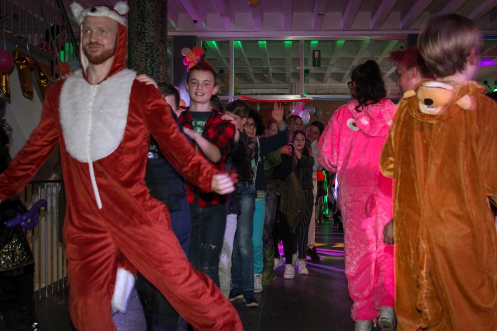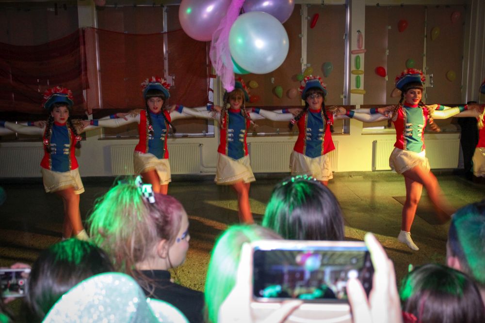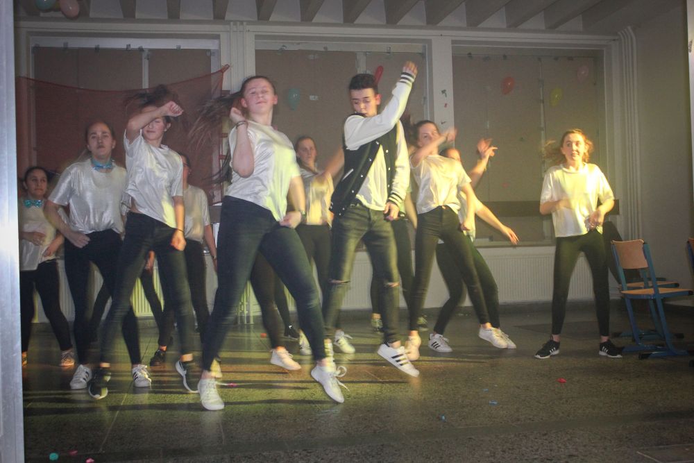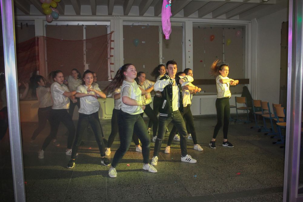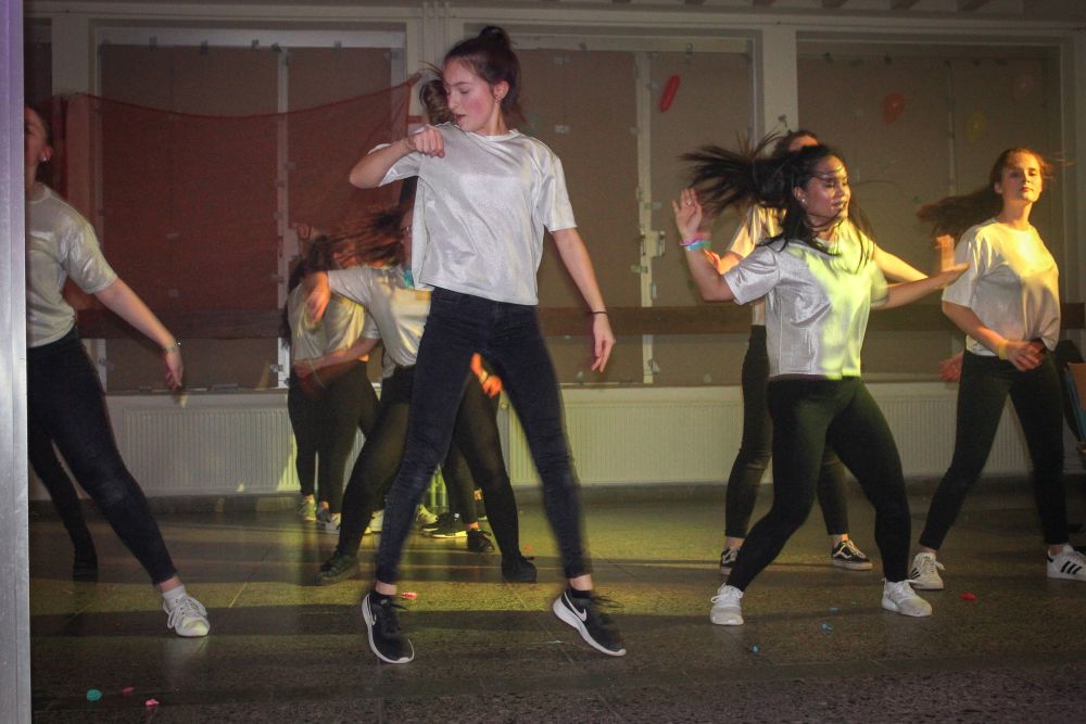 Über drei Stunden - von 16-19 Uhr - bekamen die Schülerinnen und Schüler neben verschiedenen Spielen und Tanzaufführungen von unserer Tanz-Ag und einer Gardetanzgruppe auch ein kleines kulinarisches Angebot präsentiert. Von Stopptanz bis hin zu einem „Tanz-Battle", moderiert von Elena Sema, Jana Hunsicker und Cosima Maly, war alles vertreten. Musikalisch ging es mehr modern zu. Aus den Boxen liefen aber auch die „Faschingsklassiker".