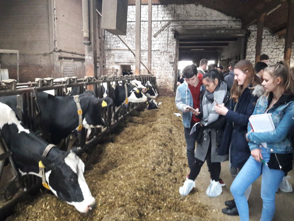 Die beiden Leistungskurse der Jahrgangstufe 11 besuchten aus diesem Grund am 08. April 2019 den Hof der Familie Gölter in Winzeln. Herr Gölter und ein Mitarbeiter führten über 1,5 Stunden die Lerngruppen über den Hof und gingen dabei auf alle Fragen rund um den Vollerwerbsbetrieb ein.