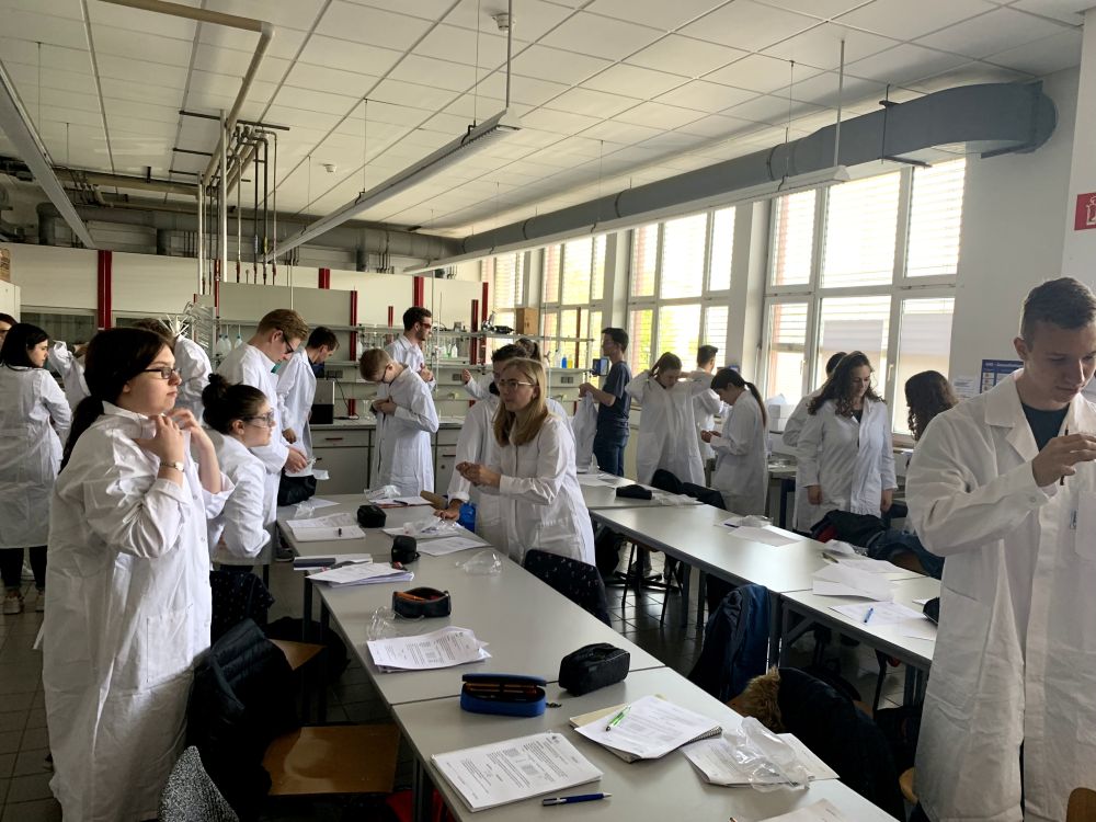 Der 12er Chemie Leistungskurs und der 11er Grundkurs haben am Donnerstag, den 16.05.2019 im Rahmen einer Exkursion die Hochschule in Pirmasens besucht, ein Ableger der größeren Hochschule in Kaiserslautern.