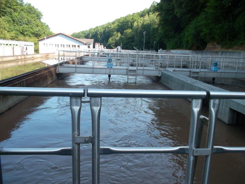 Herr Oliver Bracero führte uns durch die Kläranlage und erklärte sehr anschaulich die einzelnen Stationen eines modernen Abwasserbeseitigungsbetriebes. Die Inbetriebnahme der Anlage fand 1960 statt. Im Laufe der Zeit wurde sie ständig saniert und erweitert. Heute verfügt sie über eine moderne Mikrosiebung und eine Thermodruckhydrolyse zur Verbesserung des Abbaus an organischen Verbindungen im Faulschlamm und damit Erhöhung der Gasausbeute im Klärschlamm. Zur Überraschung der Schüler besitzt die Kläranlage auch eine Sammelkiste von Utensilien, z.B. Gebisse, Handys, Schlüssel, Spielzeugautos und alte Rohrteile, welche mit dem Abwasser in die Anlage gelangten.