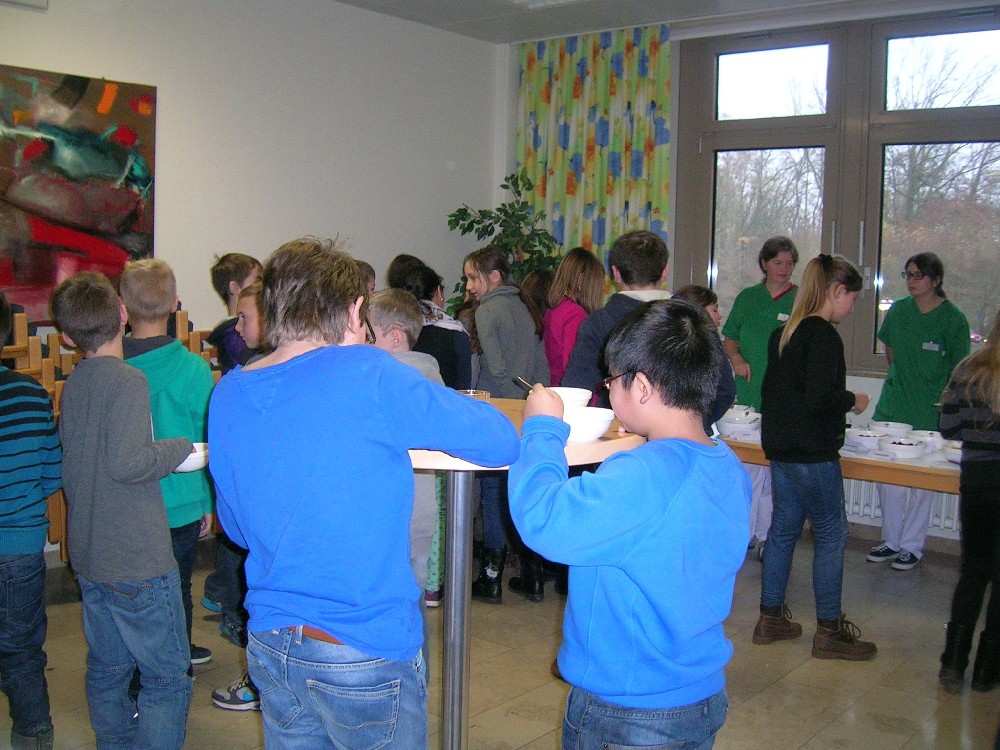 Auch Essstörungen wie z.B. Magersucht als Folge von psychosomatischen Störungen, wurden besprochen. Es erfolgte auch der Hinweis, dass diese Erkrankungen nur mit ärztlicher und familiärer Hilfe eine Chance auf Heilung aufweisen. Neben dem „gesunden Essen", welches mit Hilfe der sogenannten Nahrungspyramide aufgezeigt wurde, spielt auch das ausreichende Trinken von ungesüßten Getränken, z.B. Wasser oder Tee ( 2 bis 3 Liter am Tag ) eine wichtige Rolle. Am Schluss konnten sich alle mit einem „Fit ist cool"- Müsli stärken, dessen Zusammensetzung nachfolgend aufgeführt ist.
