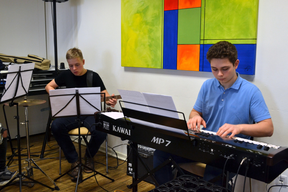 Schülerinnen und Schüler aus den Jahrgangsstufen 5 bis 12 nutzten die Zeit, um ein ansprechendes Programm für den Musikabend einzustudieren. Neben den Proben, die von Frau Knörzer, Herrn Lutz und Frau Vehling geleitet wurden, gab es auch noch genügend Zeit für Spieleabende (herzlichen Dank an den unermüdlichen Spielleiter Herrn Lutz!) und einen Ausflug ins Café.