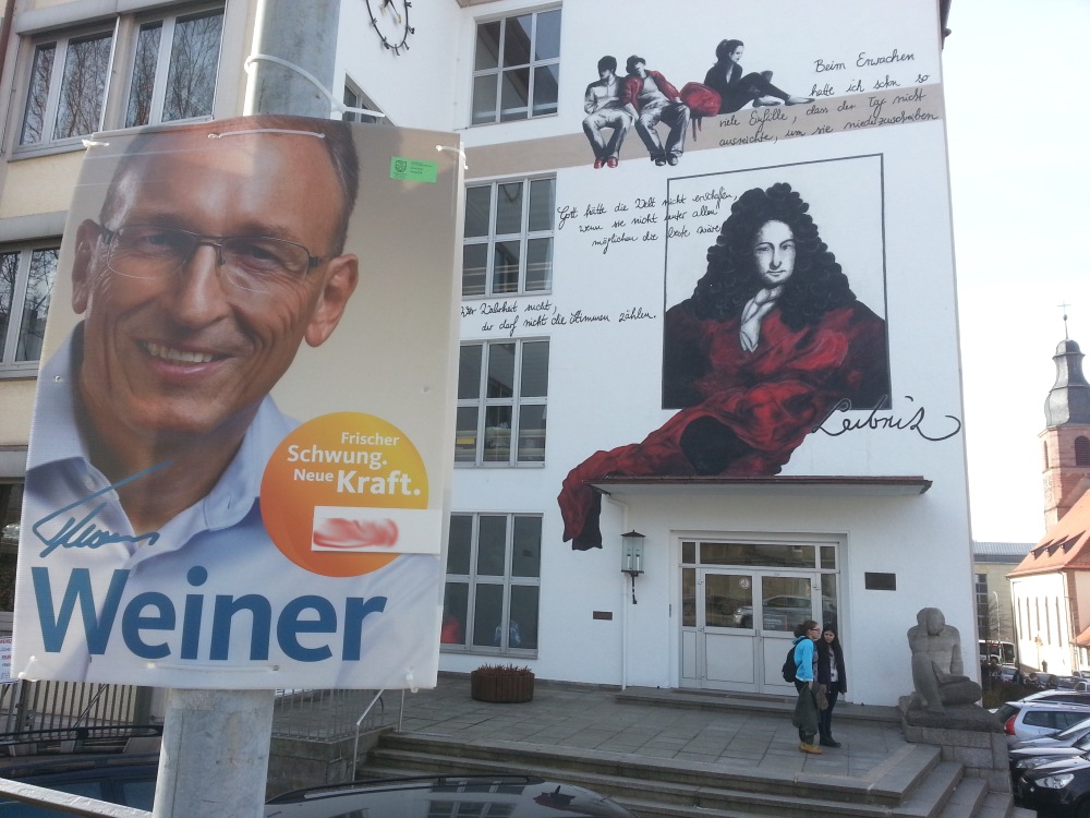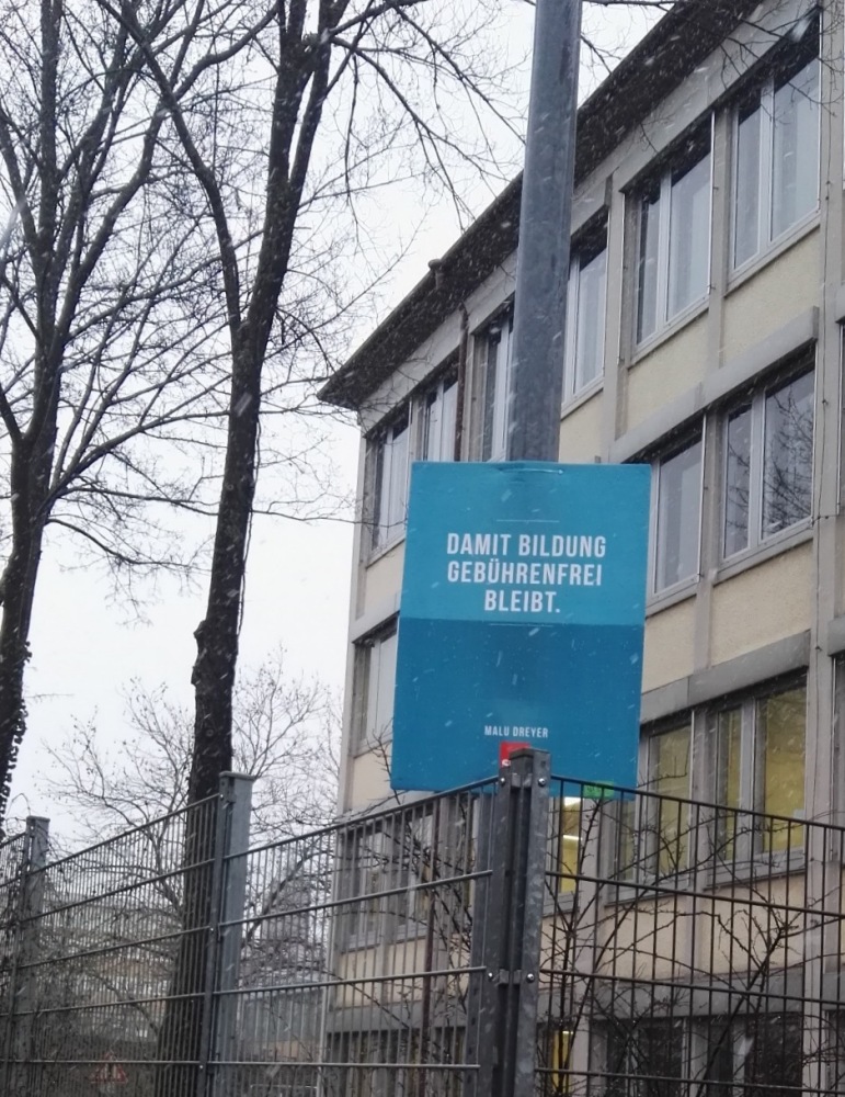 Am Dienstag, dem 23. Februar 2016, traf sich die Klasse 10c mit ihrem Sozialkundelehrer Herrn Müller um 8:00 Uhr bei nasskaltem Wetter vor dem Eingang der Schule und betrachtete sich die Wahlplakate von verschiedenen Parteien. Uns sprang sofort ins Auge, dass die Luisenstraße hauptsächlich mit bildungsfördernden und bildungsorientierten Plakaten plakatiert wurde, um uns Schüler und unsere Lehrer anzusprechen.