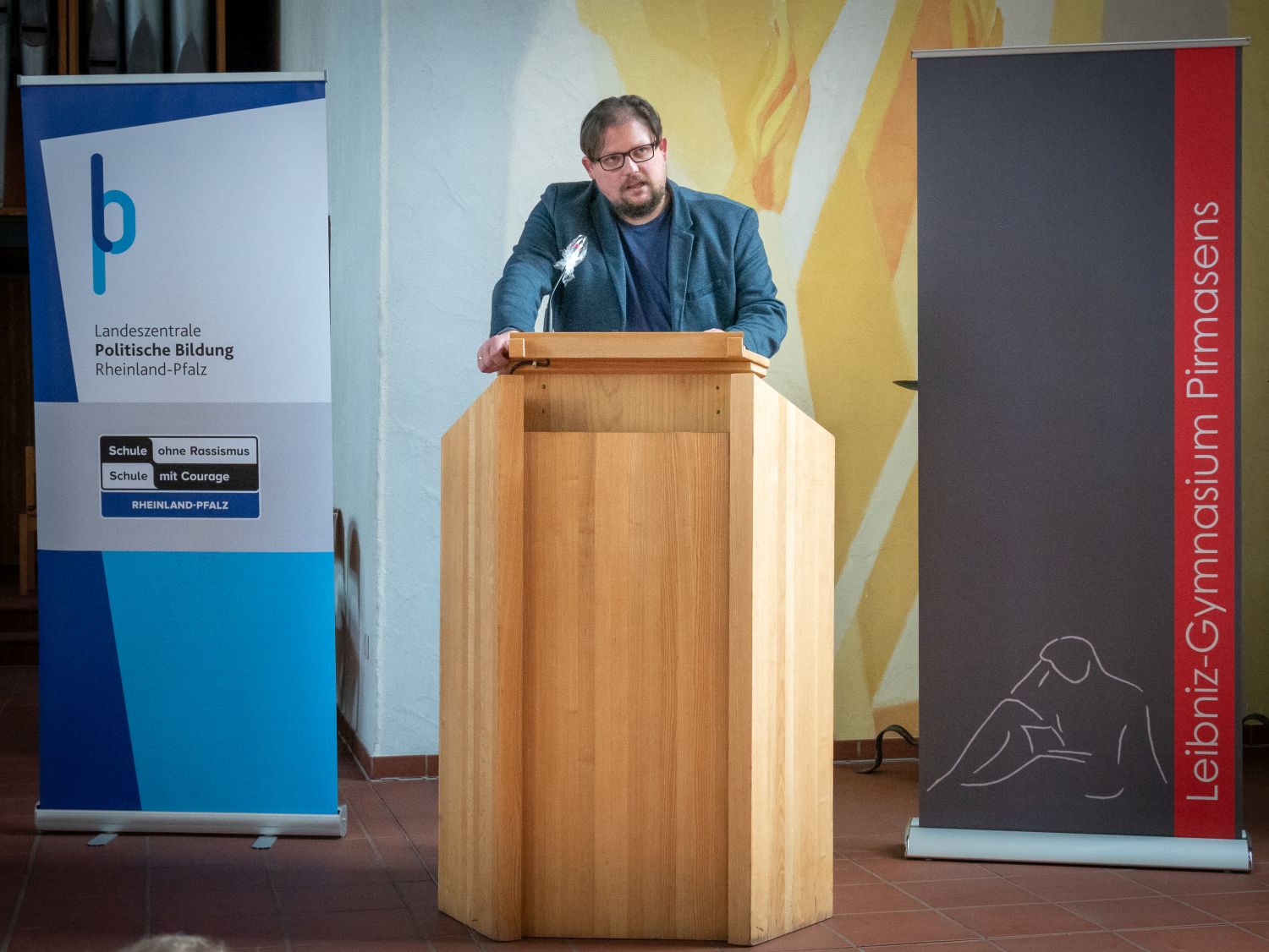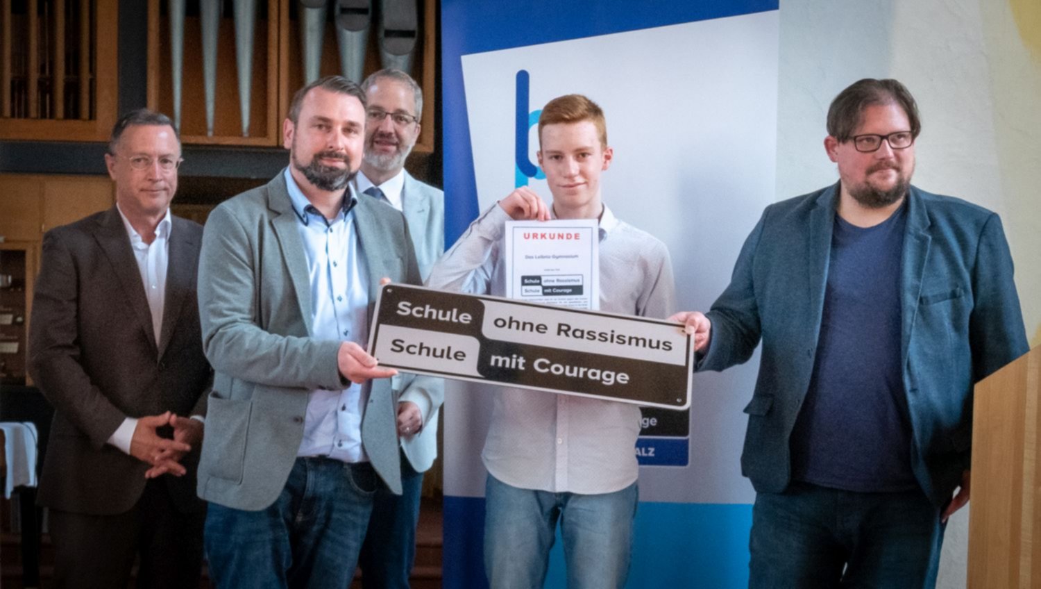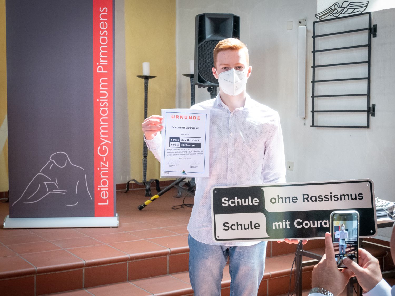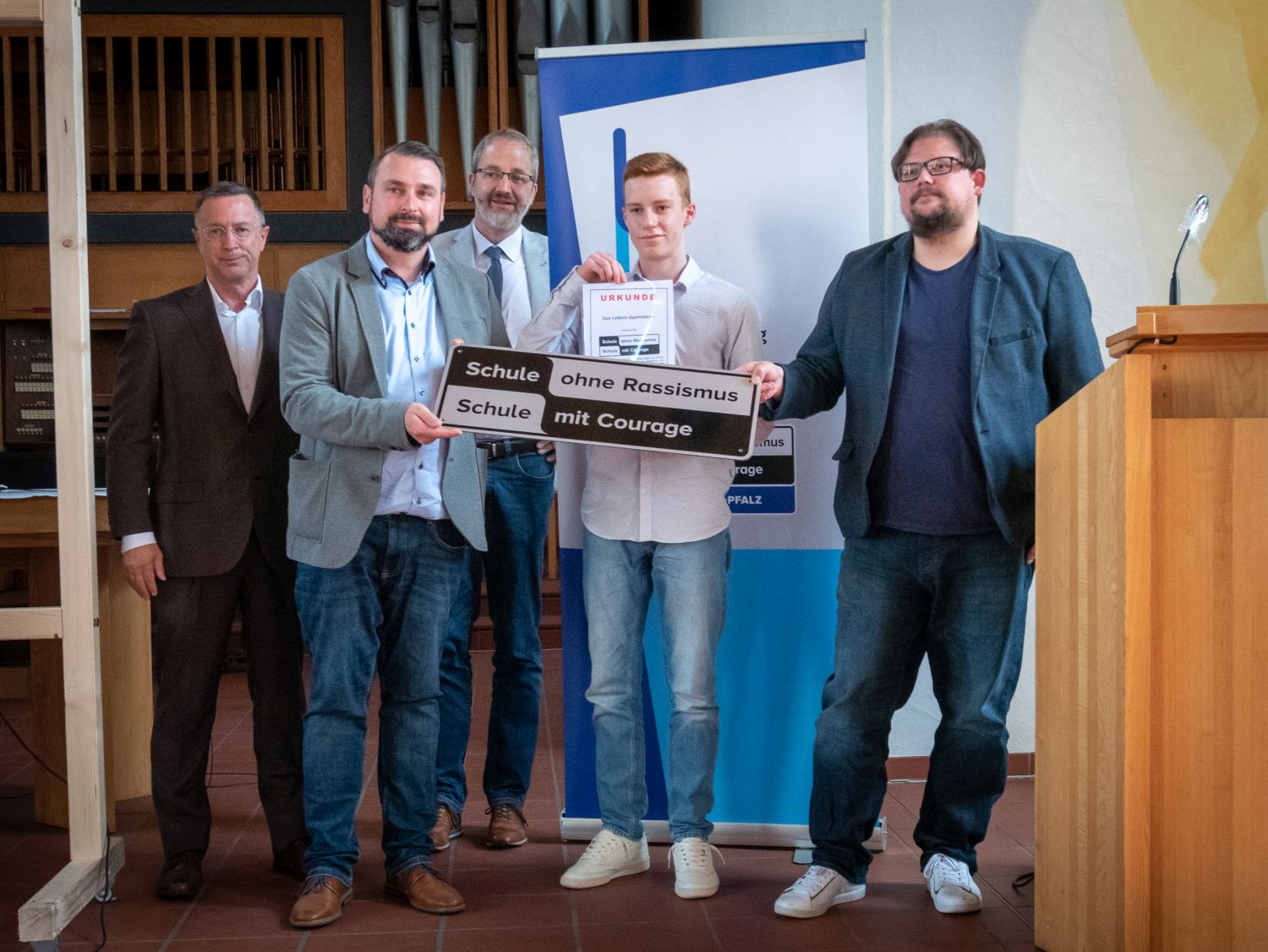 Im Namen der gesamten Schulgemeinschaft möchten wir uns bei allen Beteiligten herzlich für die Unterstützung bedanken. Besonderer Dank gilt unserem Schulpaten Klaus Scherer für die inspirierenden Worte. Seine journalistische Arbeit steht beispielhaft für das, was die AG innerhalb der Schulgemeinschaft u. a. leisten möchte. Außerdem bedanken wir uns herzlich beim Evangelischen Dekanat Pirmasens Mitte, welches uns die Johanneskirche zur Verfügung stellte, sodass Vertreterinnen und Vertreter der gesamten Schulgemeinschaft sowie unsere Ehrengäste mit ausreichendem Abstand Platz fanden. Zudem bedanken wir uns beim Förderverein, vertreten durch Herrn Herbort, und dem Elternbeirat, vertreten durch Frau Dr. Luttenberger, für ihre Unterstützung, Dr. Emling und Frau Tinschert von der Regionalkoordination für die Betreuung, sowie allen beteiligten Helfern im Hintergrund der Veranstaltung.