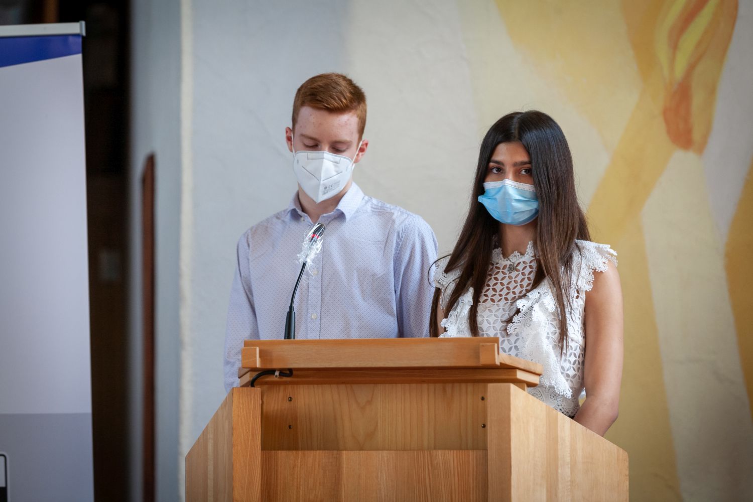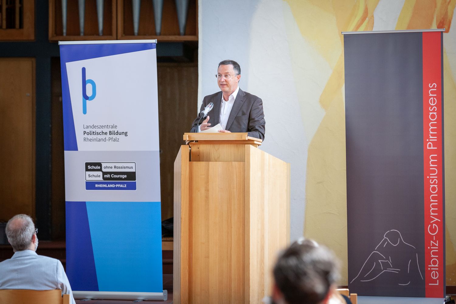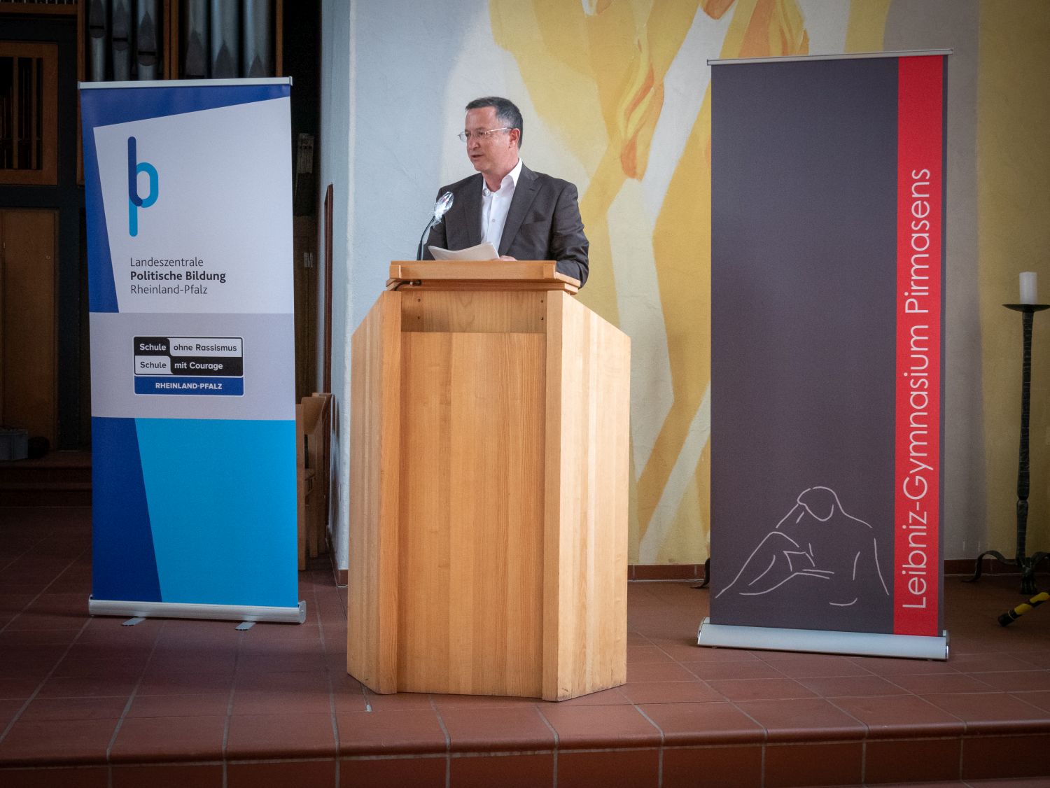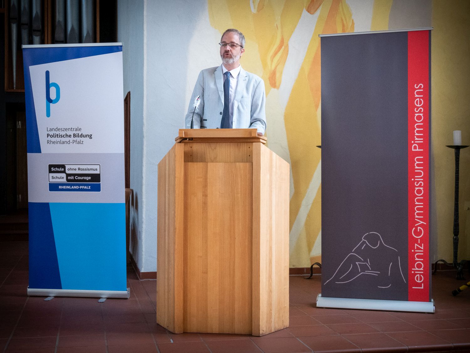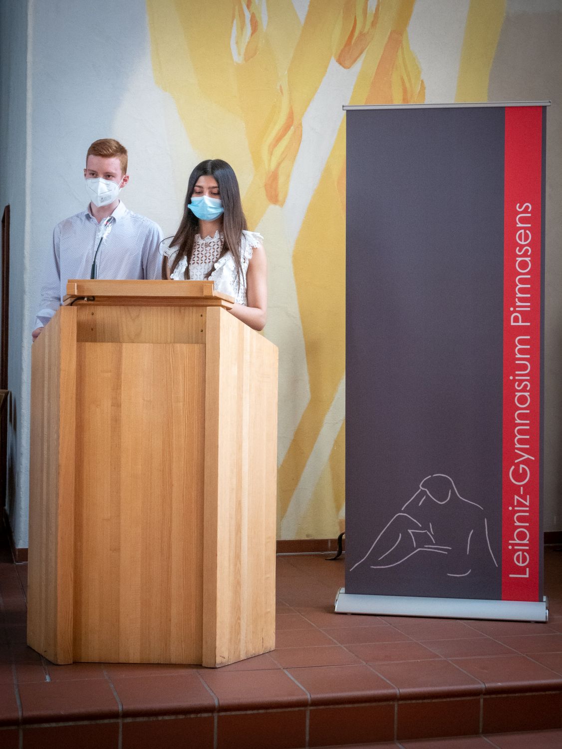 Im Namen der gesamten Schulgemeinschaft möchten wir uns bei allen Beteiligten herzlich für die Unterstützung bedanken. Besonderer Dank gilt unserem Schulpaten Klaus Scherer für die inspirierenden Worte. Seine journalistische Arbeit steht beispielhaft für das, was die AG innerhalb der Schulgemeinschaft u. a. leisten möchte. Außerdem bedanken wir uns herzlich beim Evangelischen Dekanat Pirmasens Mitte, welches uns die Johanneskirche zur Verfügung stellte, sodass Vertreterinnen und Vertreter der gesamten Schulgemeinschaft sowie unsere Ehrengäste mit ausreichendem Abstand Platz fanden. Zudem bedanken wir uns beim Förderverein, vertreten durch Herrn Herbort, und dem Elternbeirat, vertreten durch Frau Dr. Luttenberger, für ihre Unterstützung, Dr. Emling und Frau Tinschert von der Regionalkoordination für die Betreuung, sowie allen beteiligten Helfern im Hintergrund der Veranstaltung.