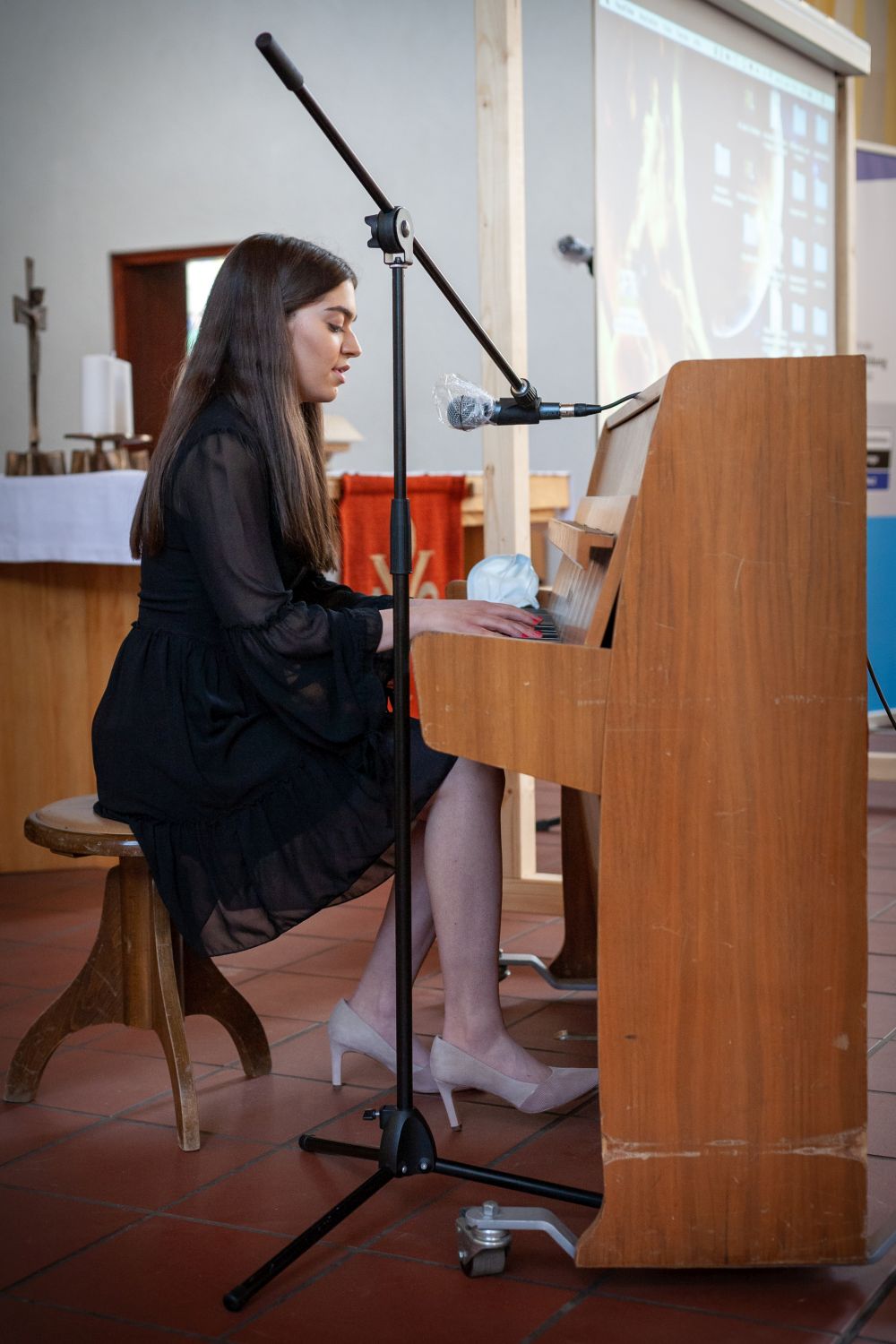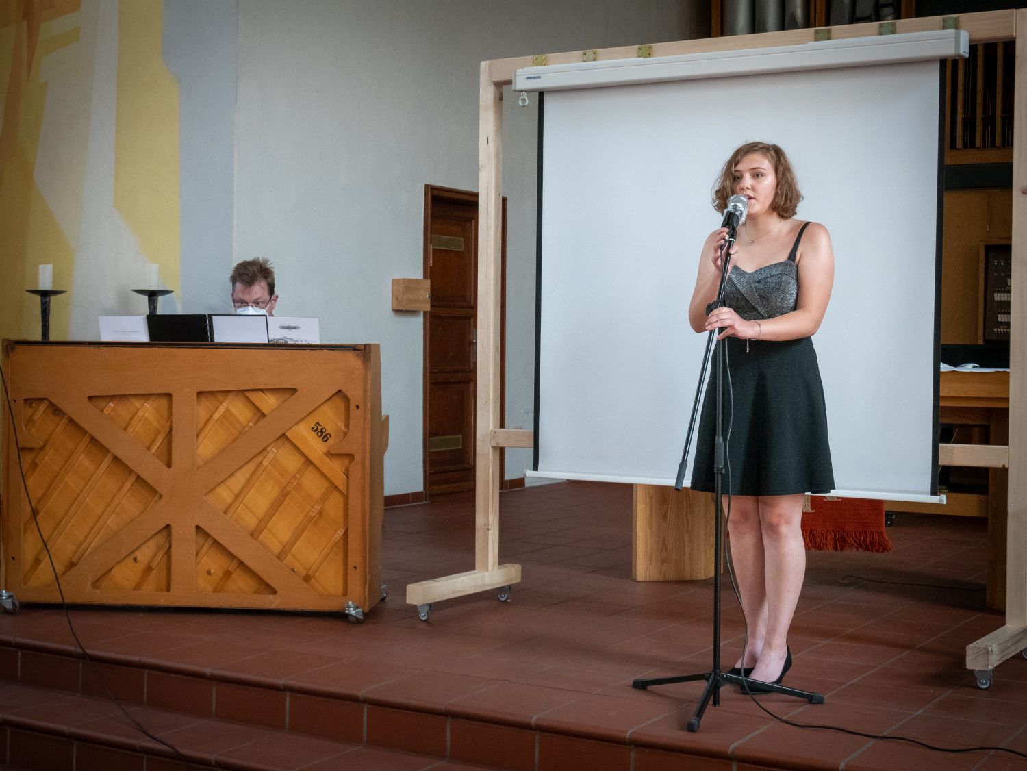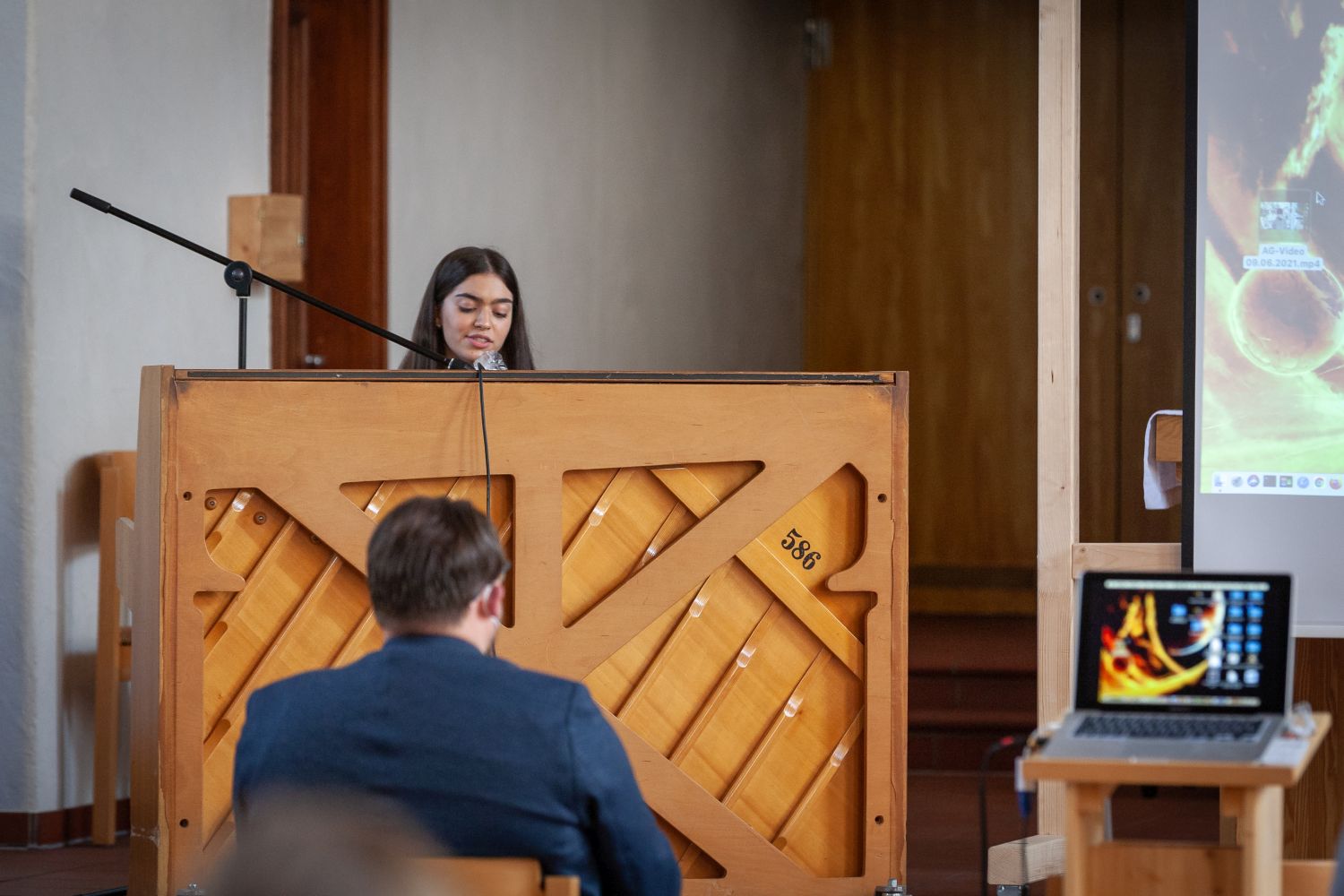 Durch eine weitere musikalische Darbietung wurde der Festakt feierlich abgeschlossen. Janica Lehmann (10c), am Klavier begleitet durch Dr. Wilfried Lingenberg, sang Birdys „People help the People" als ein Appell an uns alle. Die musikalische Umrahmung der Veranstaltung hat viele Zuschauer emotional berührt, da Livemusik im letzten Jahr so schmerzlich vermisst wurde.