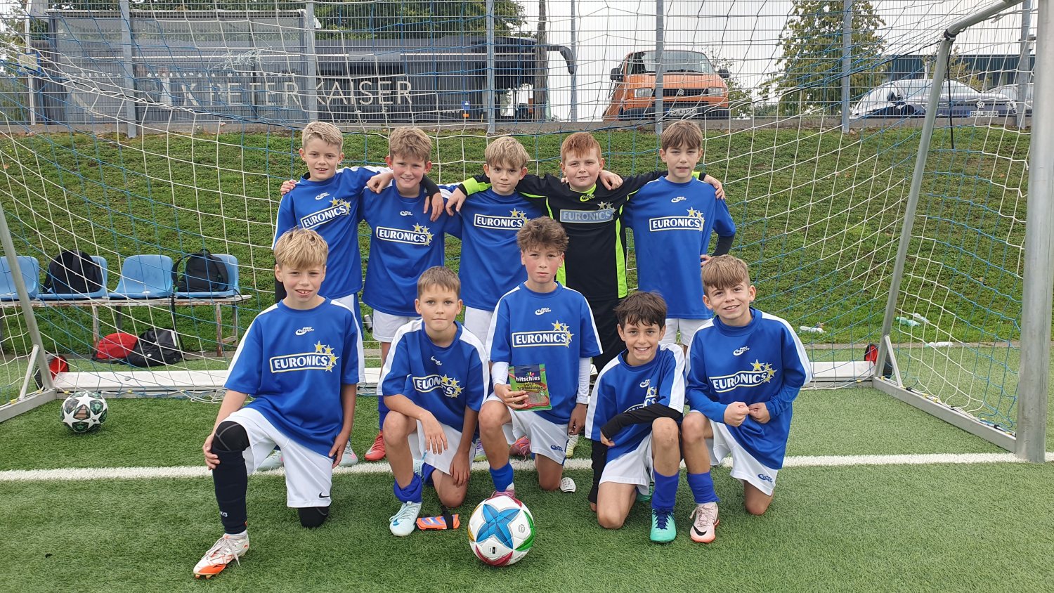 Im Anschluss gingen die Jungs der Jahrgänge 2007 bis 2009 im Wettkampf I an den Start. Das Teilnehmerfeld bestand dort aus 4 Mannschaften, die in 2 Halbfinalen und anschließendem Finale den Bezirkssieger ausspielten. Die Auslosung ergab, dass wir im ersten Halbfinale gegen den Turnierfavoriten vom Hugo-Ball Gymnasium antreten mussten. In den 2 mal 20 Minuten verteidigte unser Team leidenschaftlich und ging Mitte der 2. Hälfte in Führung. In der letzten Spielminute mussten wir den Ausgleich hinnehmen, so dass es zu einem Elfmeterschießen kam. Dieses gewann unsere Mannschaft mit 4:3 und zog überraschend ins Finale ein. Im Endspiel war die Truppe der Berufsschule unser Gegner. Der Vorjahressieger war nicht mehr so stark wie in den letzten Jahren, so dass unser Team das Spiel leicht überlegen gestalten konnte. Es dauerte jedoch bis kurz vor Spielende bis wir in Führung gehen konnten. Mit vollem Einsatz brachte unser Team den 1:0 Sieg ins Ziel und konnte sich zum Turniersieger krönen.