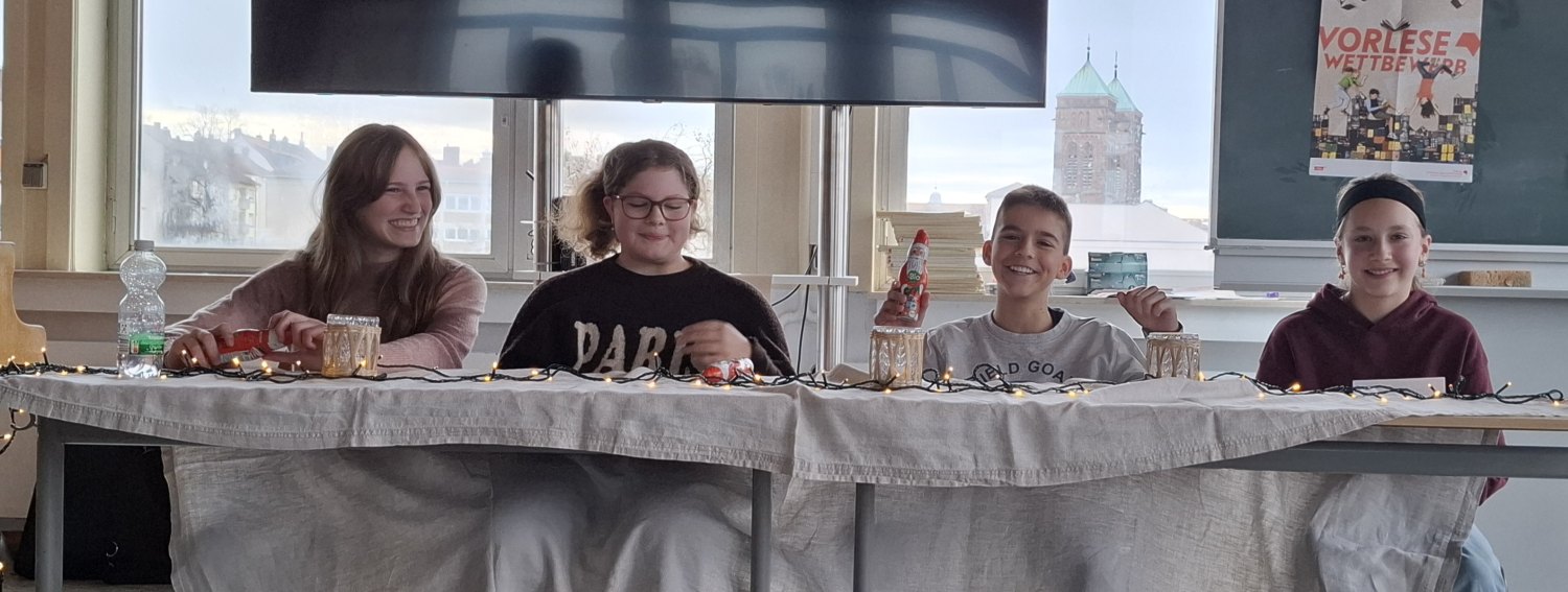 Die Jury, bestehend aus den Deutsch-Lehrerinnen der sechsten Klassen, Frau Becker, Frau Lechner und Frau Müller, wurde auch in diesem Jahr von einem Mitglied des Fördervereins unterstützt. Diese Aufgabe übernahm erstmals Frau Dr. Luttenberger. Ein weiteres Novum war es, dass auch Schüler*innen unserer Schule als Jury-Mitglied fungierten. So bewerteten auch Schülersprecherin Hannah Bischoff und der Vorjahres-Sieger, Jan Morawietz (7b), das Können unserer Klassensieger*innen.